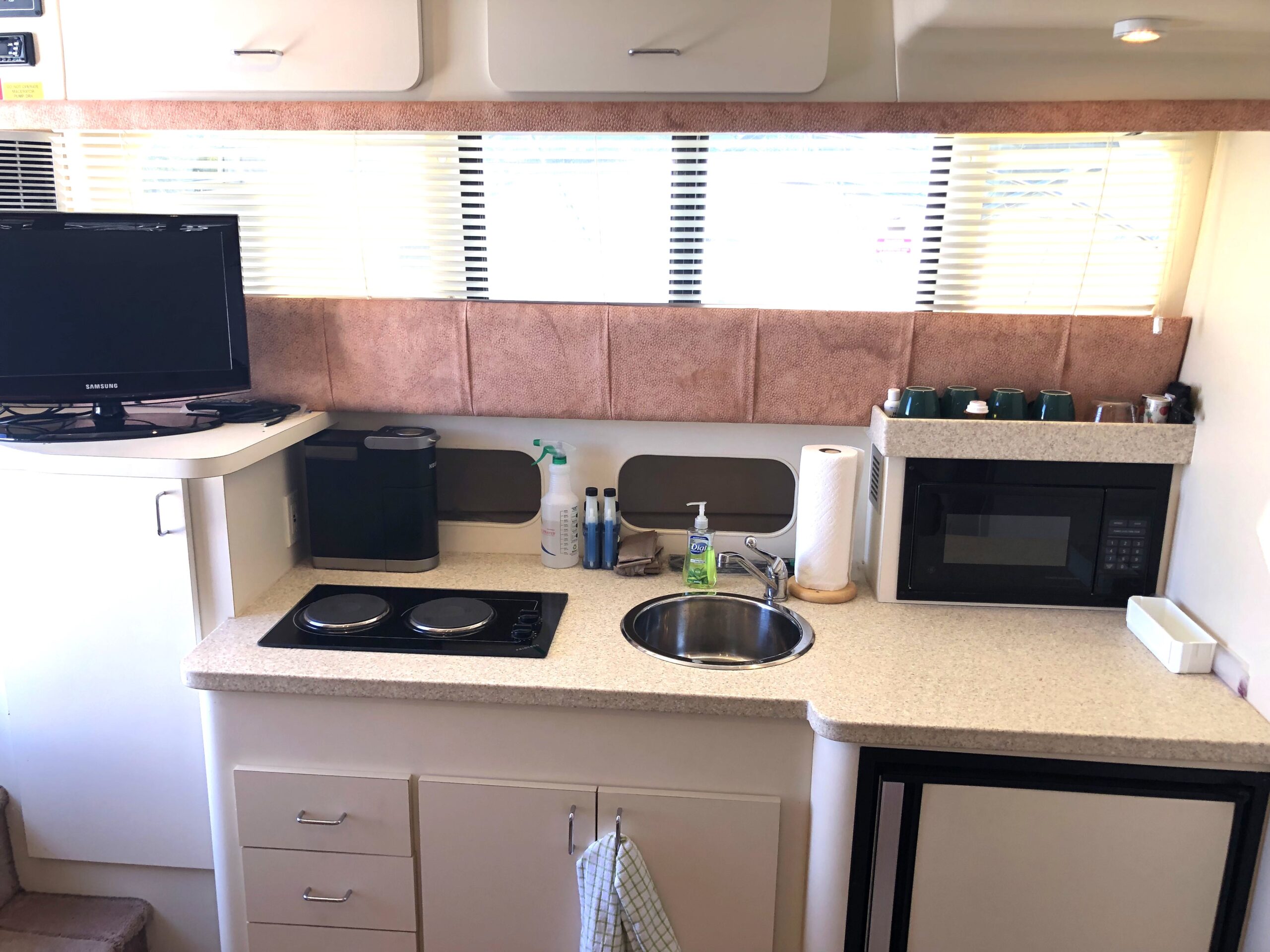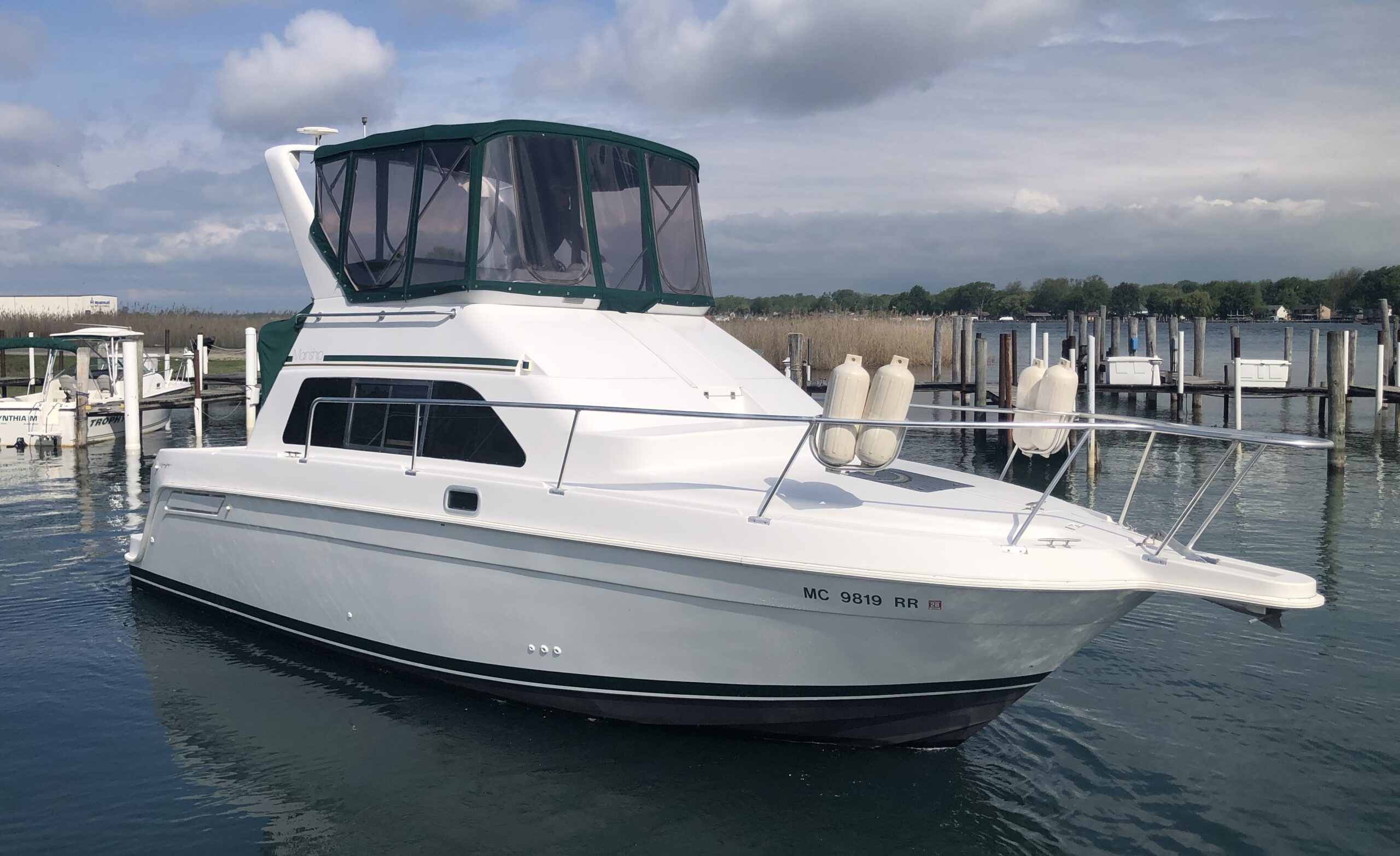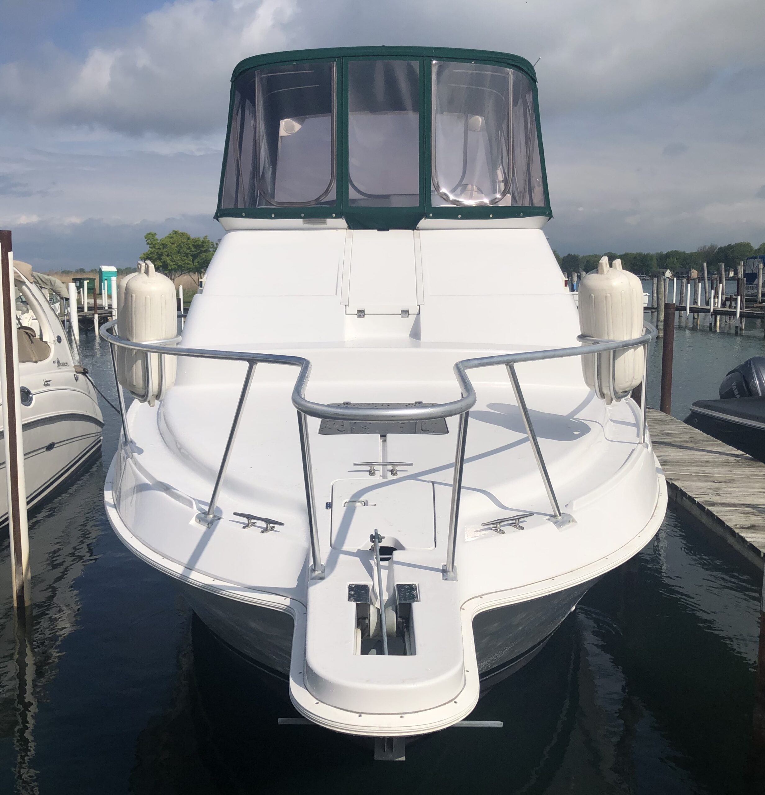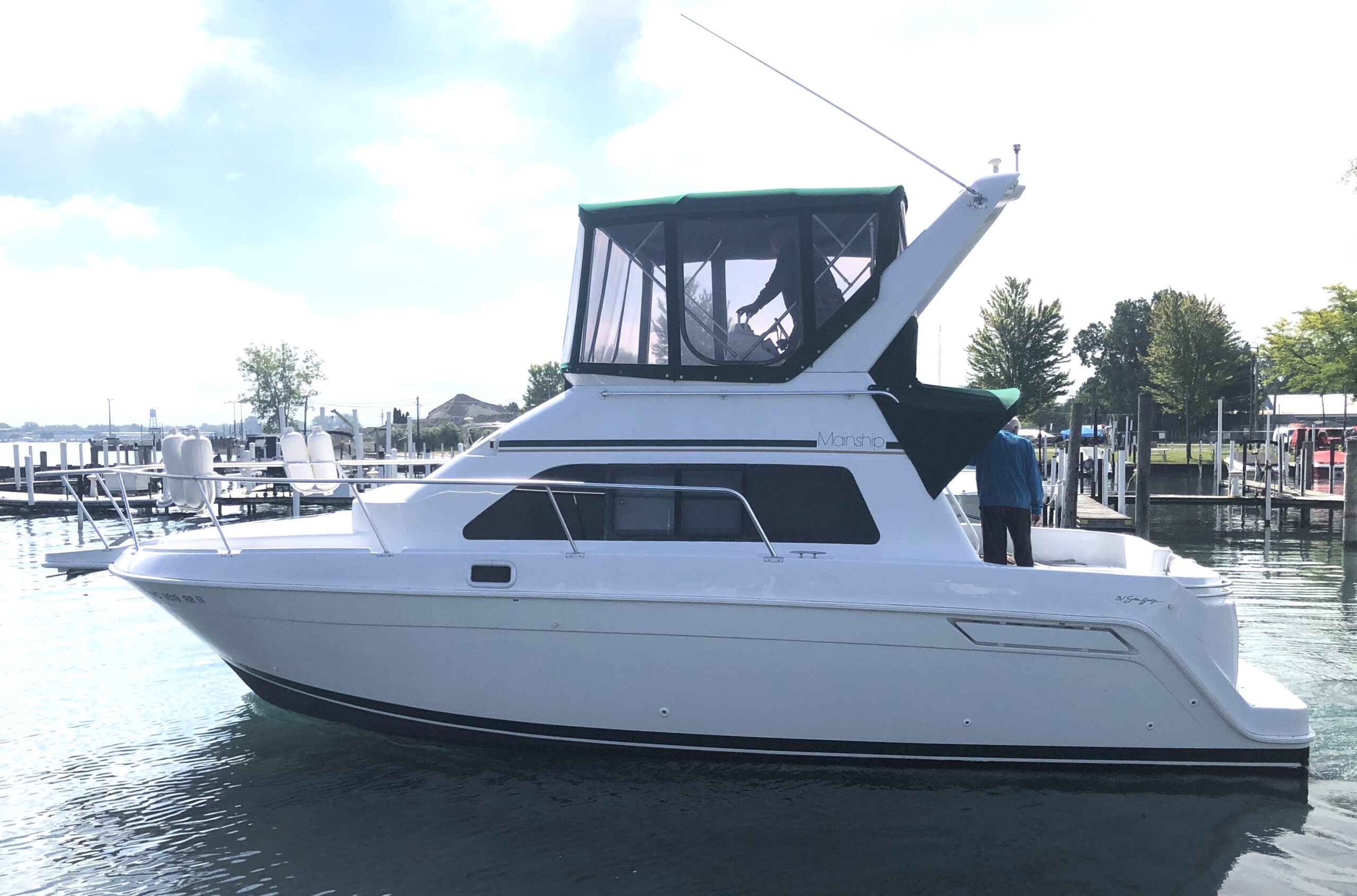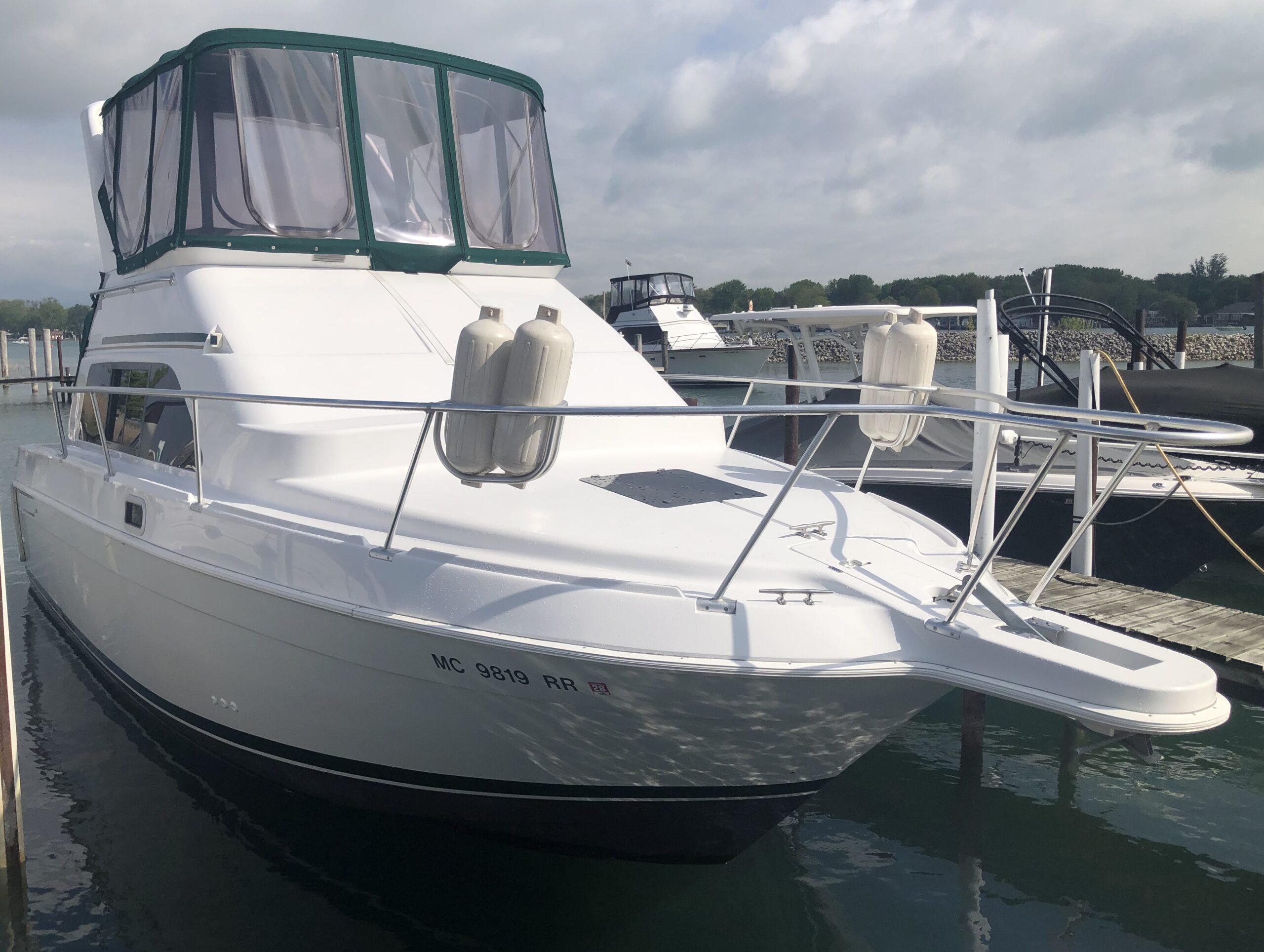 Inside / heated winter storage included! Don’t miss this incredibly rare opportunity to own and enjoy this clean, freshwater, original-owner Mainship with only 144 hours on her twin Crusader 350’s with EFI & FWC. We delivered her in 1999 and she was berthed here and winter stored in our heated storage since then. She has been professionally wheeled & waxed and maintained by our service departments. Other highlights include dual air & heat units, GPS / plotter, VHF, Tri-Data, newer bimini canvas with full enclosures, bridge cover, cockpit canopy, dripless shaft seals, and new batteries this season. The 31 Sedan Bridge features a large, uncluttered flybridge with plentiful seating and storage. Wide molded fiberglass steps replace the standard ladder, offering safety and comfort. A bridge walk-through to the foredeck along with oversize handrails add to the safety of this ultra-functional and comfortable Mainship. Please inquire for more details!