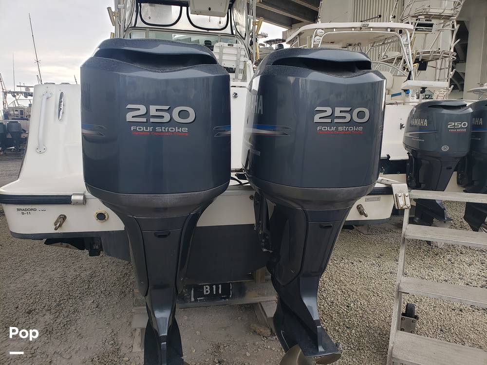 Stepping up to the helm area are twin Todd Ladder back seats, Yamaha engine controls, Yamaha digital gauges, trim tab controls, Dual Audio stereo, and Sea Star hydraulic steering. Electronics include Lowrance GPS-fishfinder-plotter, Standard VHF, and Furuno radar.