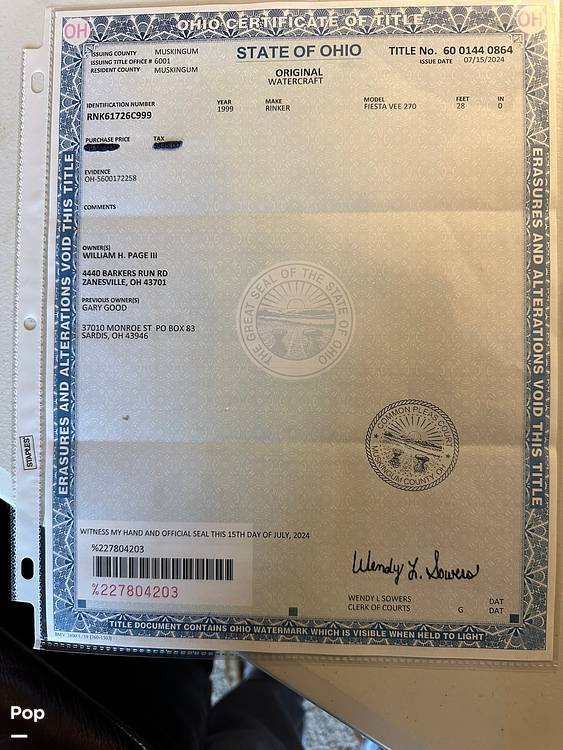 If you are in the market for a cuddy cabin, look no further than this 1999 Rinker Fiesta Vee 270, priced right at $28,500.00 (offers encouraged). This boat is located in Zanesville, Ohio and is in good condition. She is also equipped with a Mercruiser engine.