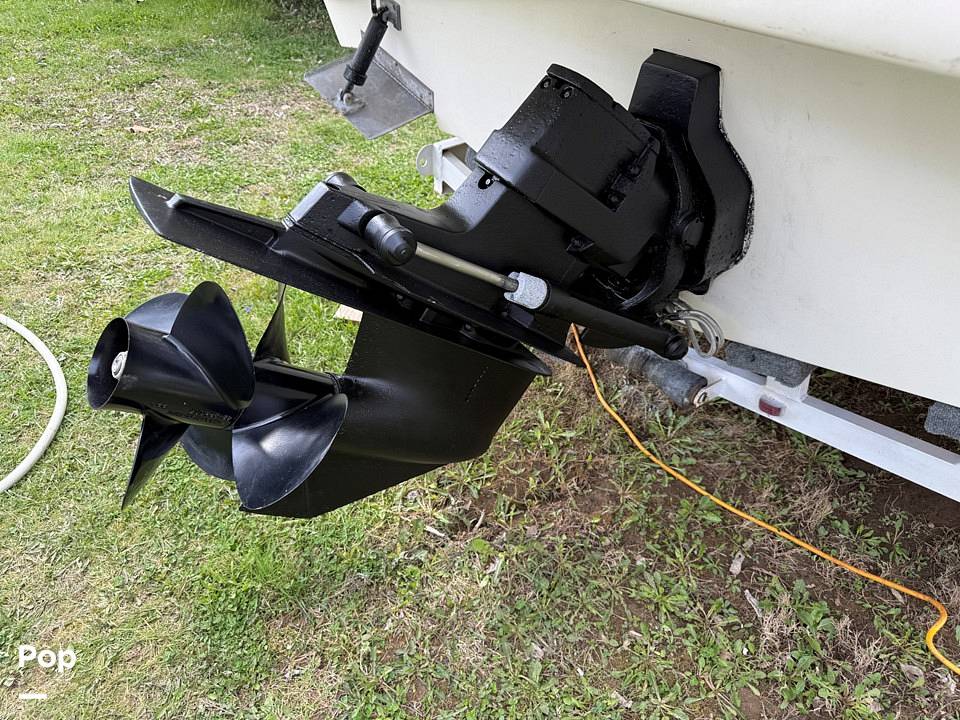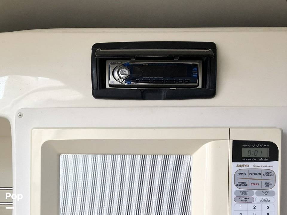 The spacious cabin comfortably sleeps six, featuring a convertible V-berth dinette, a private mid-cabin berth, and a fully equipped galley with stove, refrigerator, and microwave oven. Enjoy the conveniences of home on the water with a hot water heater, a dedicated black water holding tank, a freshwater tank, and a spacious enclosed wet bath featuring a flush toilet and shower.