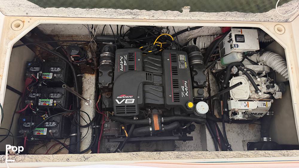 Powered by a MerCruiser 7.4L V8 inboard/outboard, this boat delivers strong performance and smooth cruising whether you're heading out for a day trip or anchoring overnight.