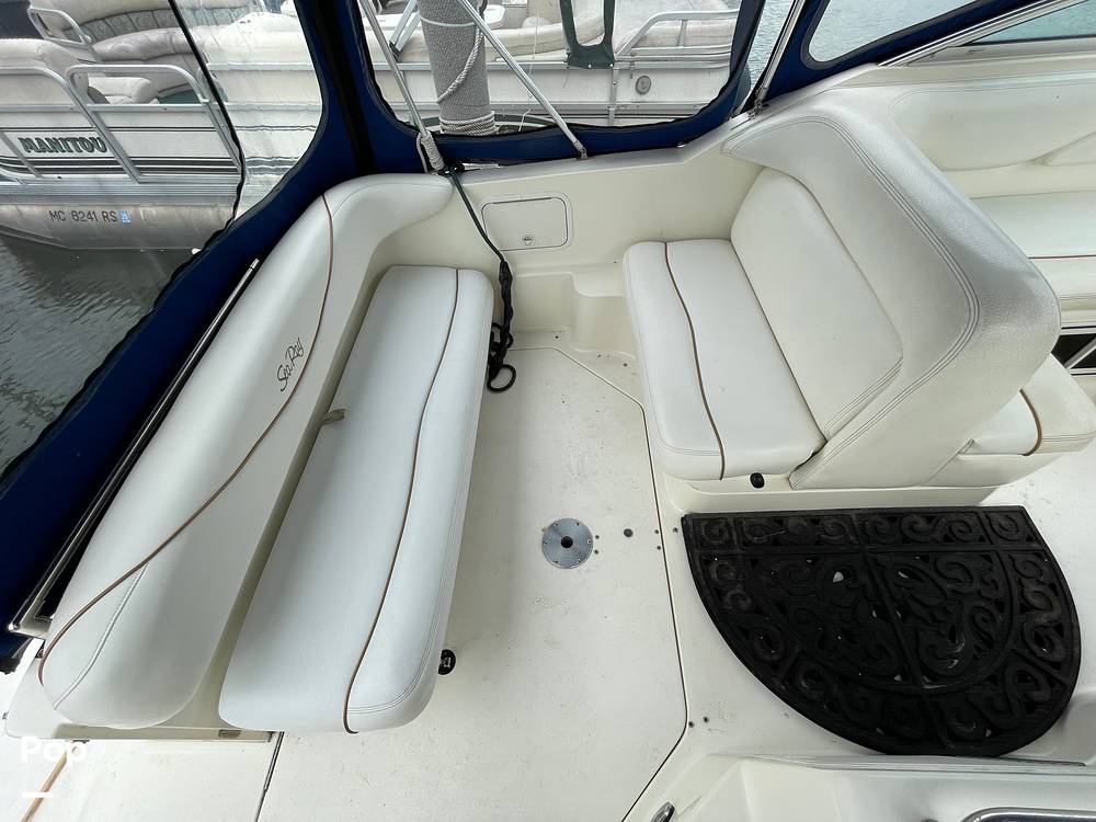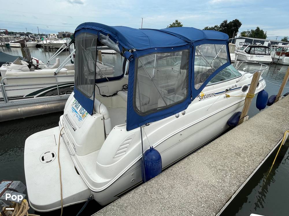 As you step through the centerline companionway, you'll discover the beautifully adorned salon of the 260 Sundancer, accented with rich cherry trim. The full-service galley on the port side beckons you to prepare delightful meals, while the convertible V-berth / dinette forward offers a cozy and adaptable space. The mid-berth aft provides additional sleeping quarters, and a well-appointed enclosed head/shower is conveniently located to starboard. Every inch of the interior is designed for your comfort and enjoyment.