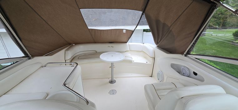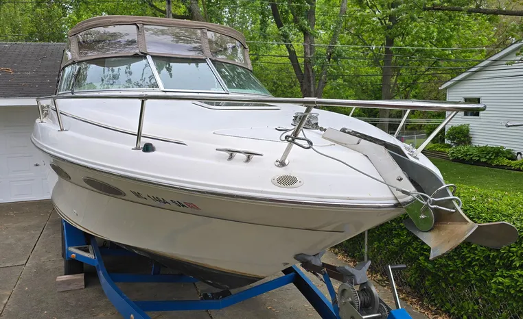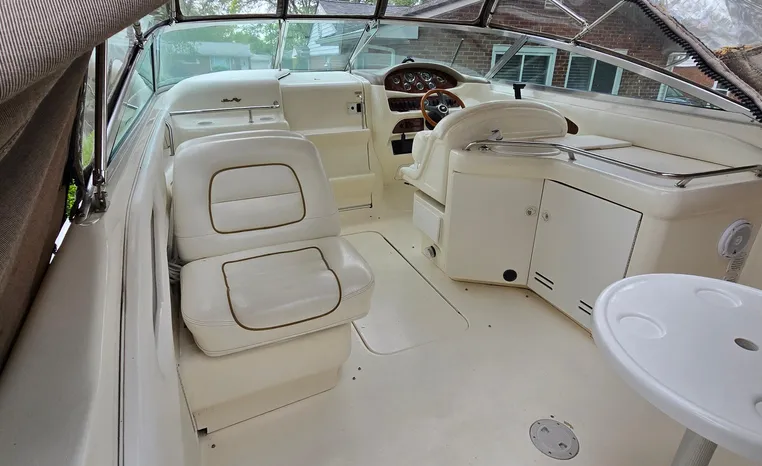The Sea Ray 280 SS, from the 1999 model year, is a Sun Sport-style powerboat known for its versatility and comfortable layout. It features a cockpit with generous seating, abundant storage, and an entertainment center, along with an enclosed head for convenience. The boat is powered by a gasoline engine, typically a sterndrive, with options like a 7.4L MPI Bravo III MCM (310 hp) or a 454 Magnum MPI Bravo III MCM (385 hp).