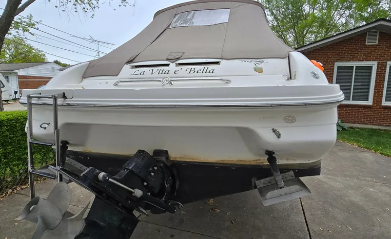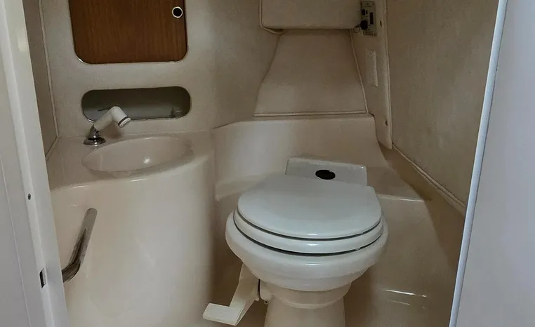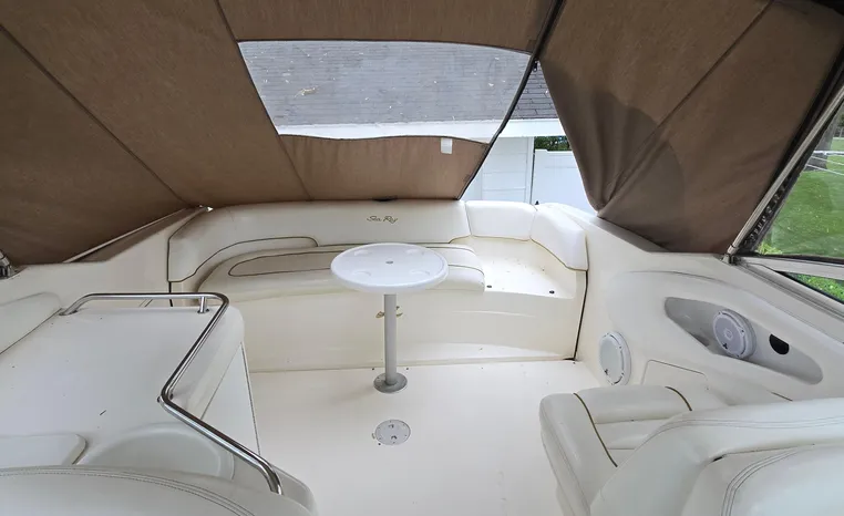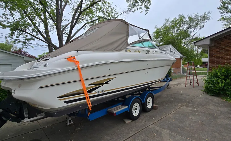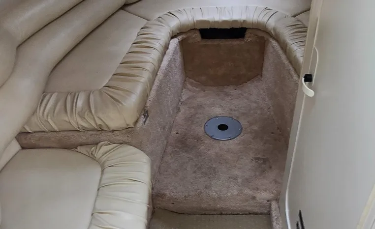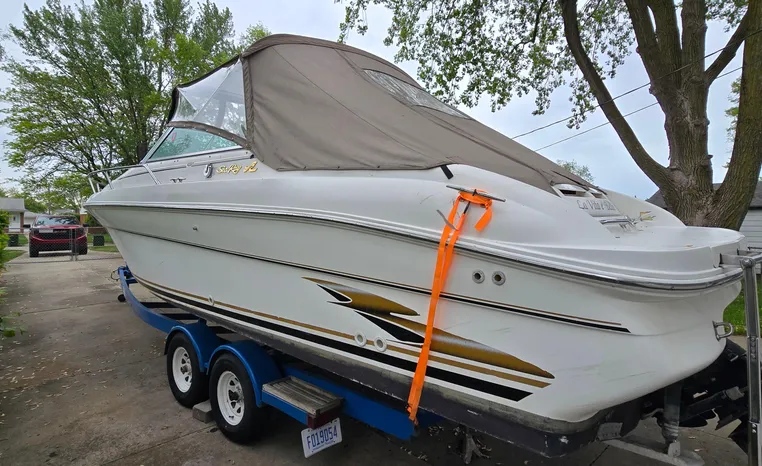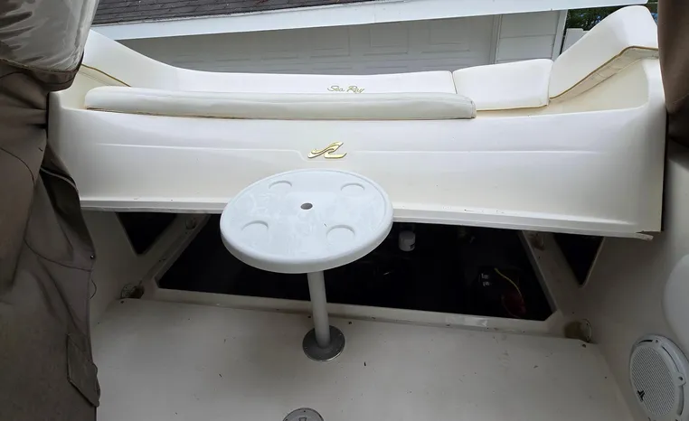 The Sea Ray 280 SS, from the 1999 model year, is a Sun Sport-style powerboat known for its versatility and comfortable layout. It features a cockpit with generous seating, abundant storage, and an entertainment center, along with an enclosed head for convenience. The boat is powered by a gasoline engine, typically a sterndrive, with options like a 7.4L MPI Bravo III MCM (310 hp) or a 454 Magnum MPI Bravo III MCM (385 hp).