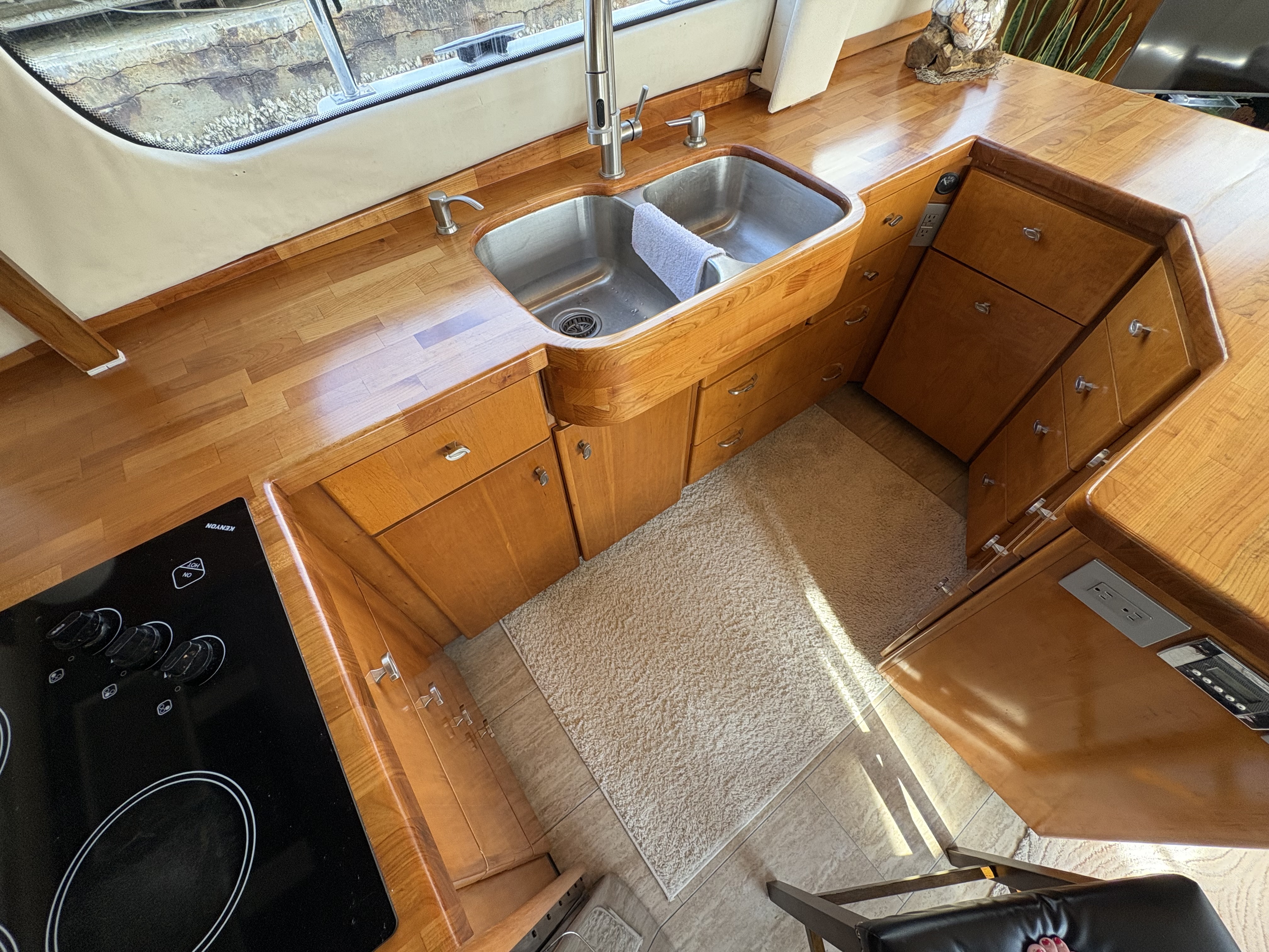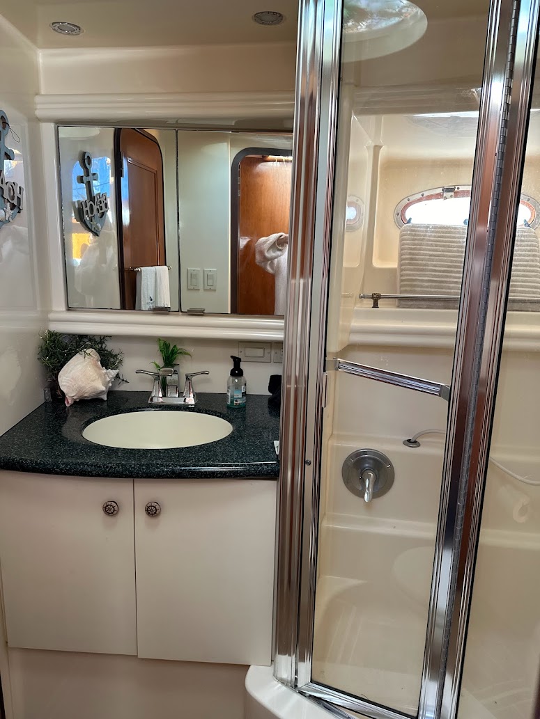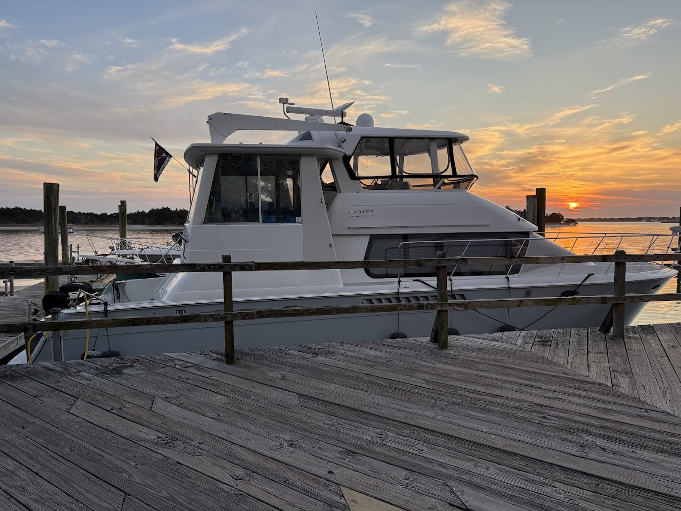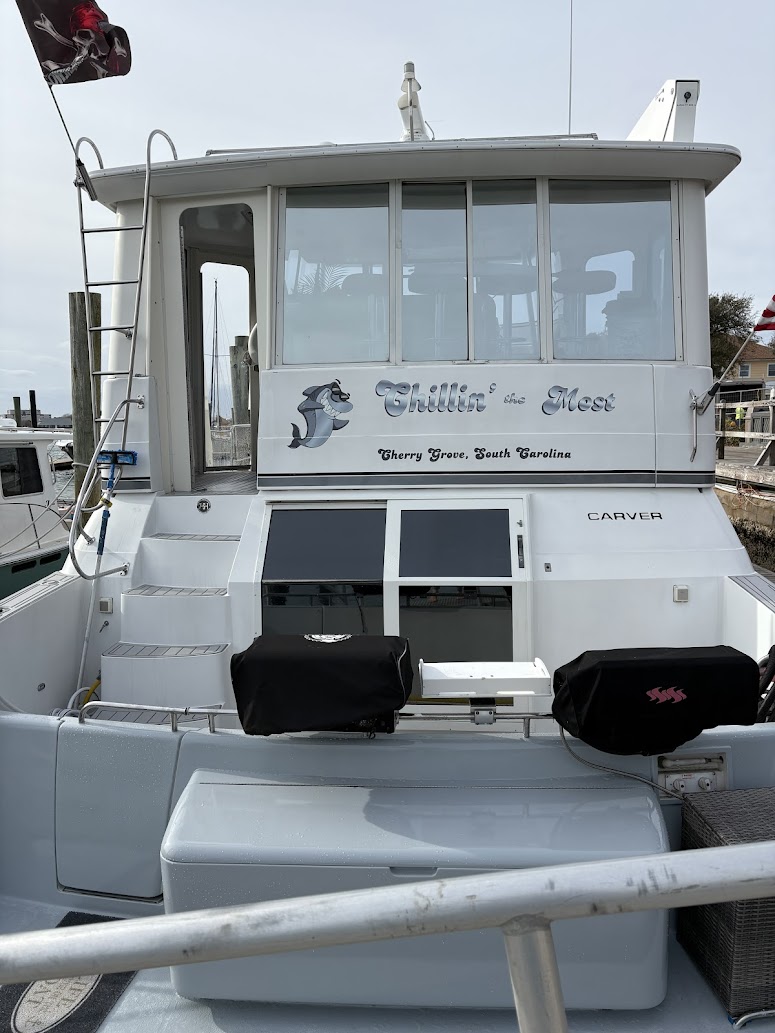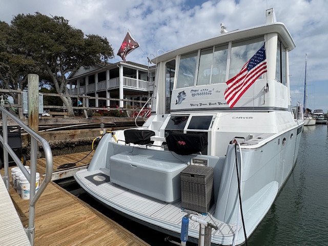 Customized for the best home on the water you'd ever want! 2 Volvo Diesels 473HP per motor, Racor 900 Fuel system, Kohler 13.5 Generator, ZF IRM301a-2 Transmission, Venus Bow Thruster, Bennett Trim Tabs, 5 16000btu AC units, 4 fuel tanks 232 gallons each, 3 freshwater tanks for 350 totl, 80 gallon blackwater, 20 Gallon Hotwater heater, Simrad G09SXE dual units, Raytheon S160 Depth, Firebox Xintex, Central Vac, full size Washer and Dryer, full size refridgerator, 3 burner ceramic cooktop, Kitchenaid Convection microwave, Fully remodeled kitchen with 19 drawers, farmers sink and butcherblock countertops-OUTSTANDING! Two bedrooms, both have queen beds, two full bathrooms with showers and vacflush toliets. Aft cabin has glass enclosed sitting area (has ac and heat) plus live edge counter top with beverage refridgerator and ice maker. Aft can fit 10 to 12 people comfortably. Marine stereo system with 6 40 watt speakers to amp up the fun! Salon has love seat and recliner. Swim platform has Electric smoker and grill attached. Aquatech flooring is on all exterior decking, inside aft cabin, plus in both bathrooms. This carver is in exceptional shape. Rides super, cruising speed of 9 knots is all you need for the best time with family and friends. We have been on it since July, 2020 - Another season of our life has called us off the water. We know Chillin' the Most will be an awesome yacht for you!