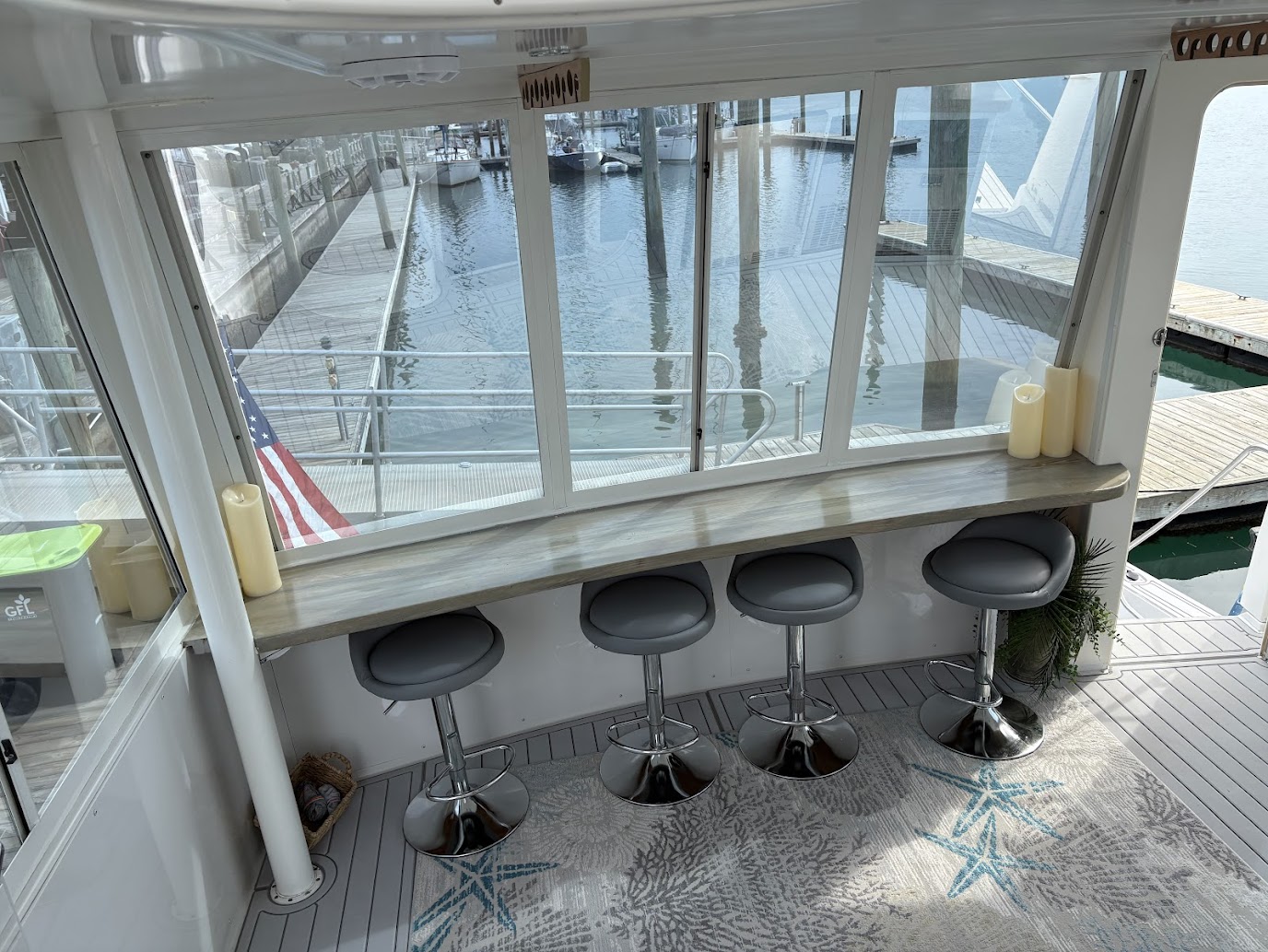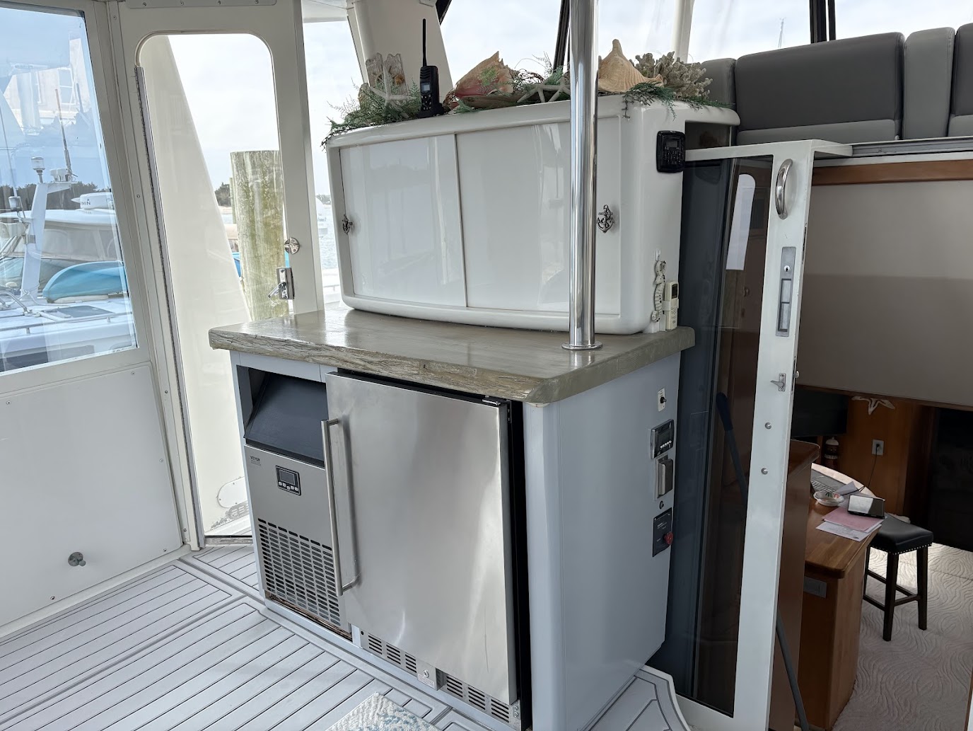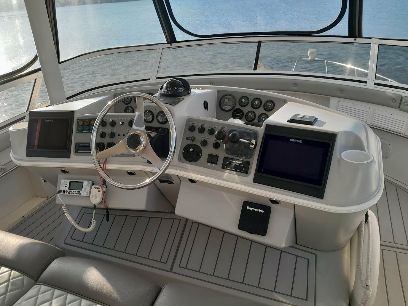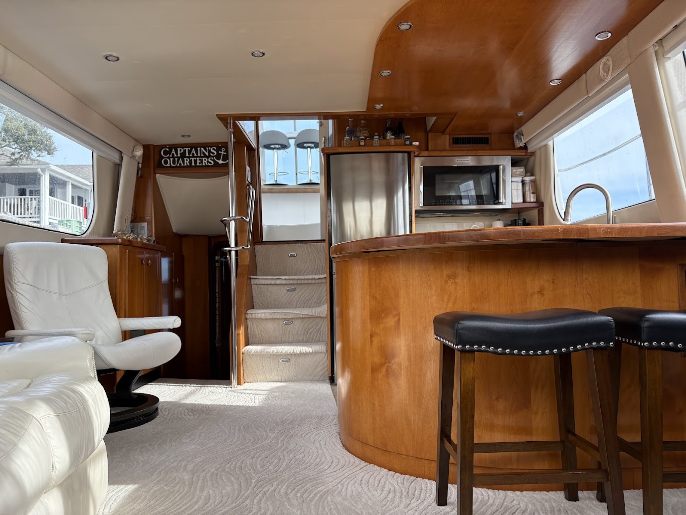 Customized for the best home on the water you'd ever want! 2 Volvo Diesels 473HP per motor, Racor 900 Fuel system, Kohler 13.5 Generator, ZF IRM301a-2 Transmission, Venus Bow Thruster, Bennett Trim Tabs, 5 16000btu AC units, 4 fuel tanks 232 gallons each, 3 freshwater tanks for 350 totl, 80 gallon blackwater, 20 Gallon Hotwater heater, Simrad G09SXE dual units, Raytheon S160 Depth, Firebox Xintex, Central Vac, full size Washer and Dryer, full size refridgerator, 3 burner ceramic cooktop, Kitchenaid Convection microwave, Fully remodeled kitchen with 19 drawers, farmers sink and butcherblock countertops-OUTSTANDING! Two bedrooms, both have queen beds, two full bathrooms with showers and vacflush toliets. Aft cabin has glass enclosed sitting area (has ac and heat) plus live edge counter top with beverage refridgerator and ice maker. Aft can fit 10 to 12 people comfortably. Marine stereo system with 6 40 watt speakers to amp up the fun! Salon has love seat and recliner. Swim platform has Electric smoker and grill attached. Aquatech flooring is on all exterior decking, inside aft cabin, plus in both bathrooms. This carver is in exceptional shape. Rides super, cruising speed of 9 knots is all you need for the best time with family and friends. We have been on it since July, 2020 - Another season of our life has called us off the water. We know Chillin' the Most will be an awesome yacht for you!