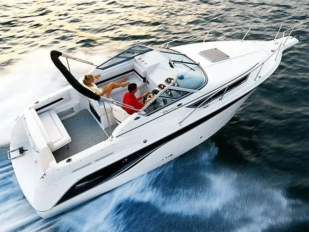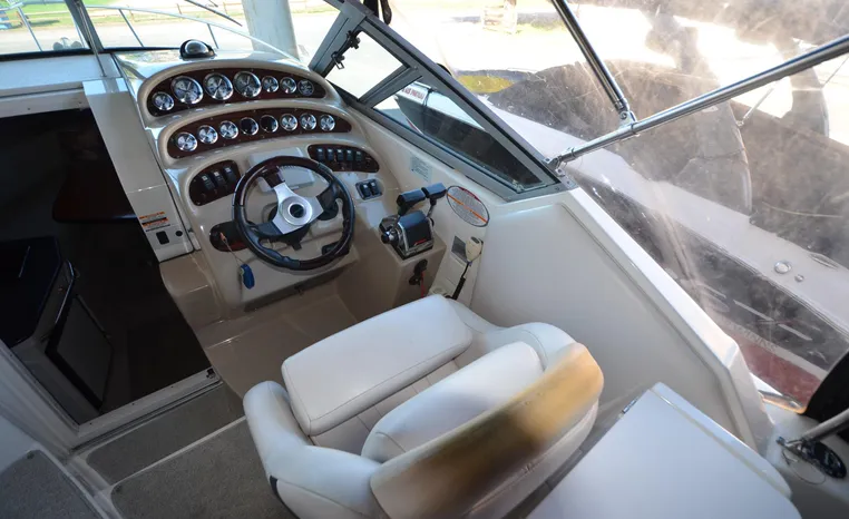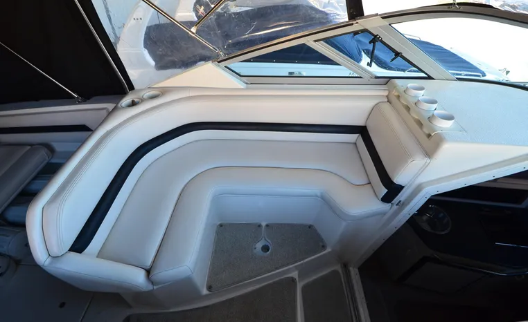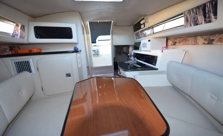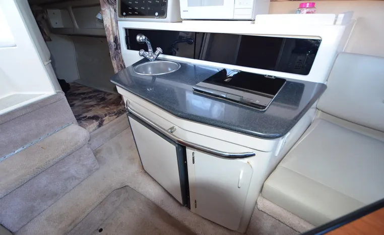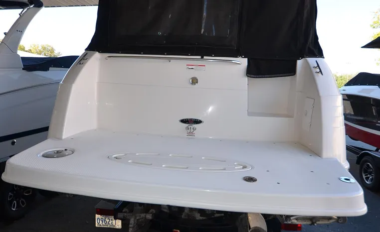 27' 2000 Chaparral 270 Signature, twin 190 HP, Mercruiser, engine hours TBD, raw water cooled, Alpha drive units, Marine Air, reverse cycle A/C unit, Galley down with under counter Norcold refrigerator, single burner stove, large sink, Vee Berth table converts to berth sleeps two, mid cabin double berth sleeps two, bimini with full enclosure camper top, extended swim platform, boarding ladder and triple axle bunk trailer.