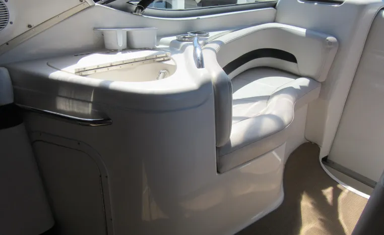 If you are looking for a small family cruiser with all the amenities you just found it! This Chaparral Signature 300 has all the creature comforts including Air Conditioning, Fusion Sound, and much more! With only 556 freshwater hours since new the twin 5.7L Mercruiser engines with Alpha 1 drives provide excellent performance and have many years of service left in them. The full enclosure camper canvas is still very functional but isinglass side panels and aft window are about ready to be replaced. A large swim platform including a swim ladder and a Windlass make anchoring out for a day of swimming easy and safe. A list of installed features includes: