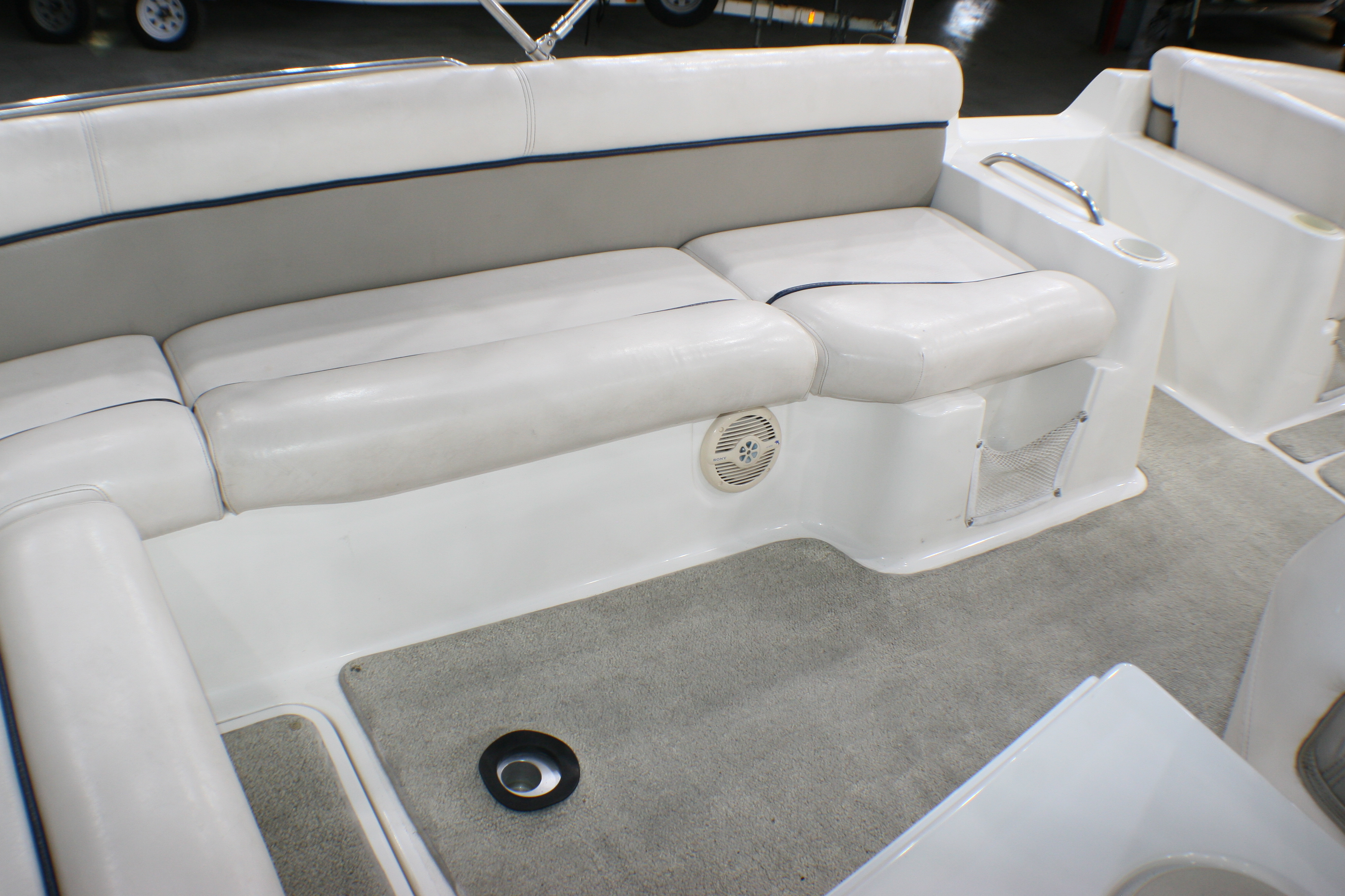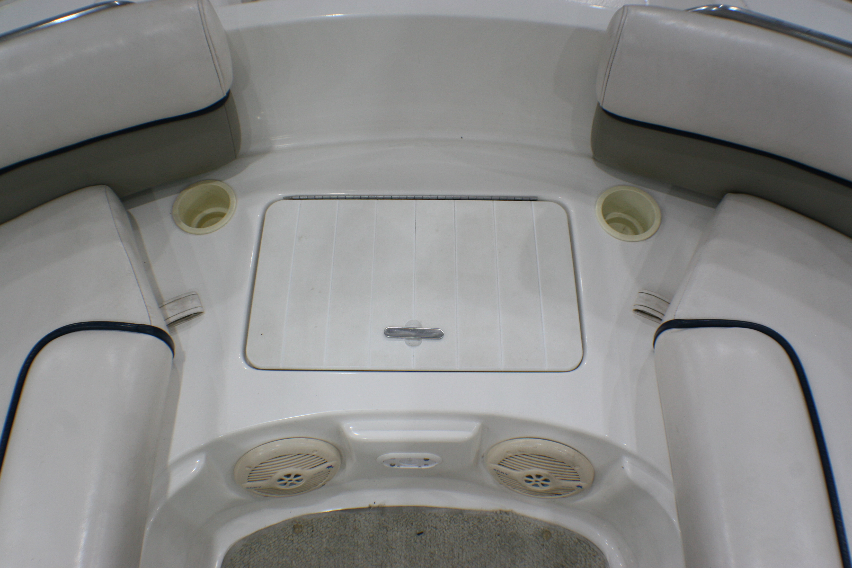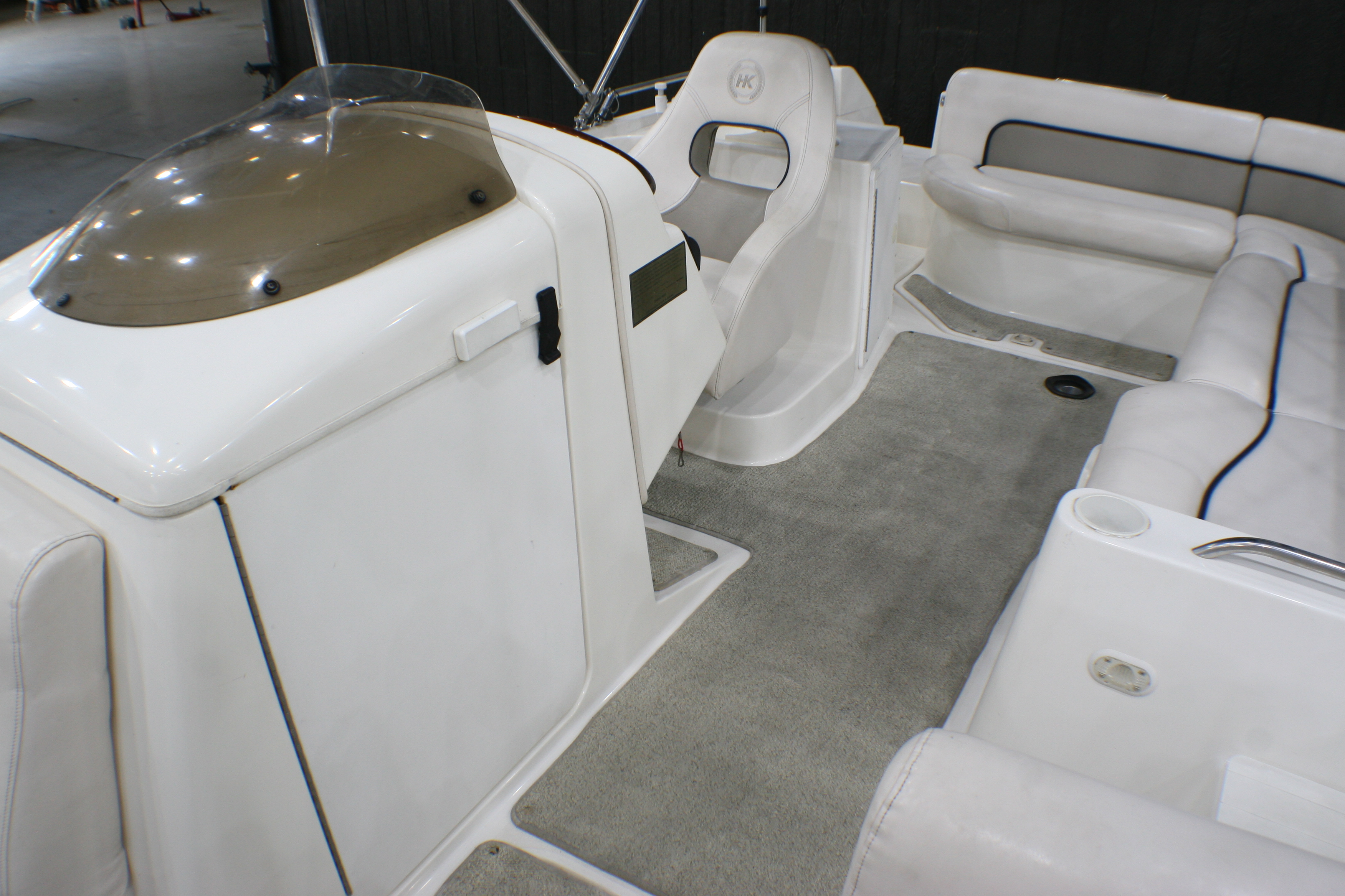 This Harris Kayot 226 runs great and has plenty of room for all your family. The nice thing about this deck boat is its versatility, it has a Volvo Penta 250hp engine so it can handle a lot of water sports easily. The layout of the interior accommodates plenty of space for your whole family or a lot of friends to stretch out. The hull design allows for friendly beaching and with a ladder at the bow and stern both, its easy boarding. At the end of the day or a fun-filled weekend on the water, there’s plenty of storage for all your water toys too. Come check this Kayot out today before someone else beats you to it!