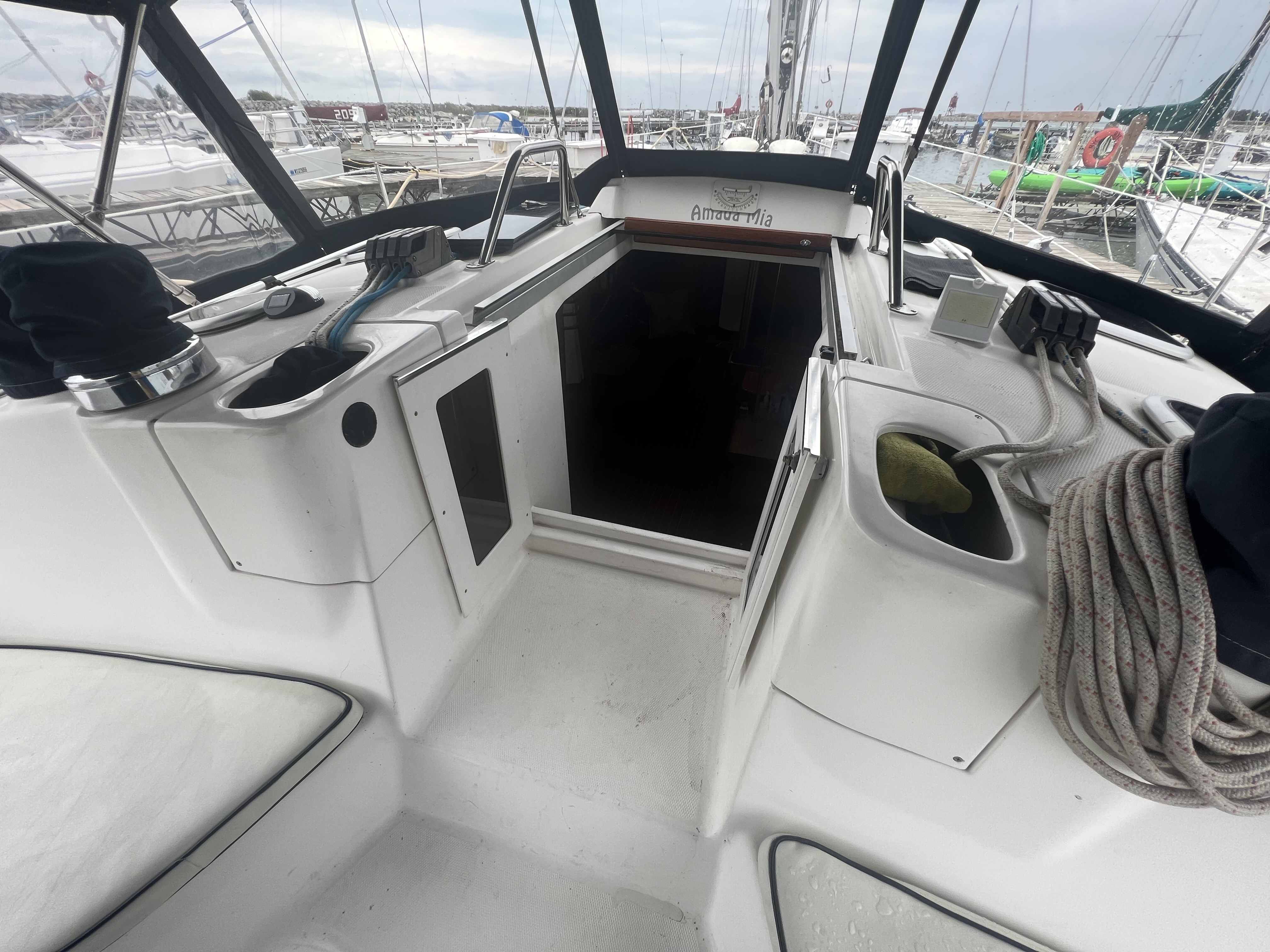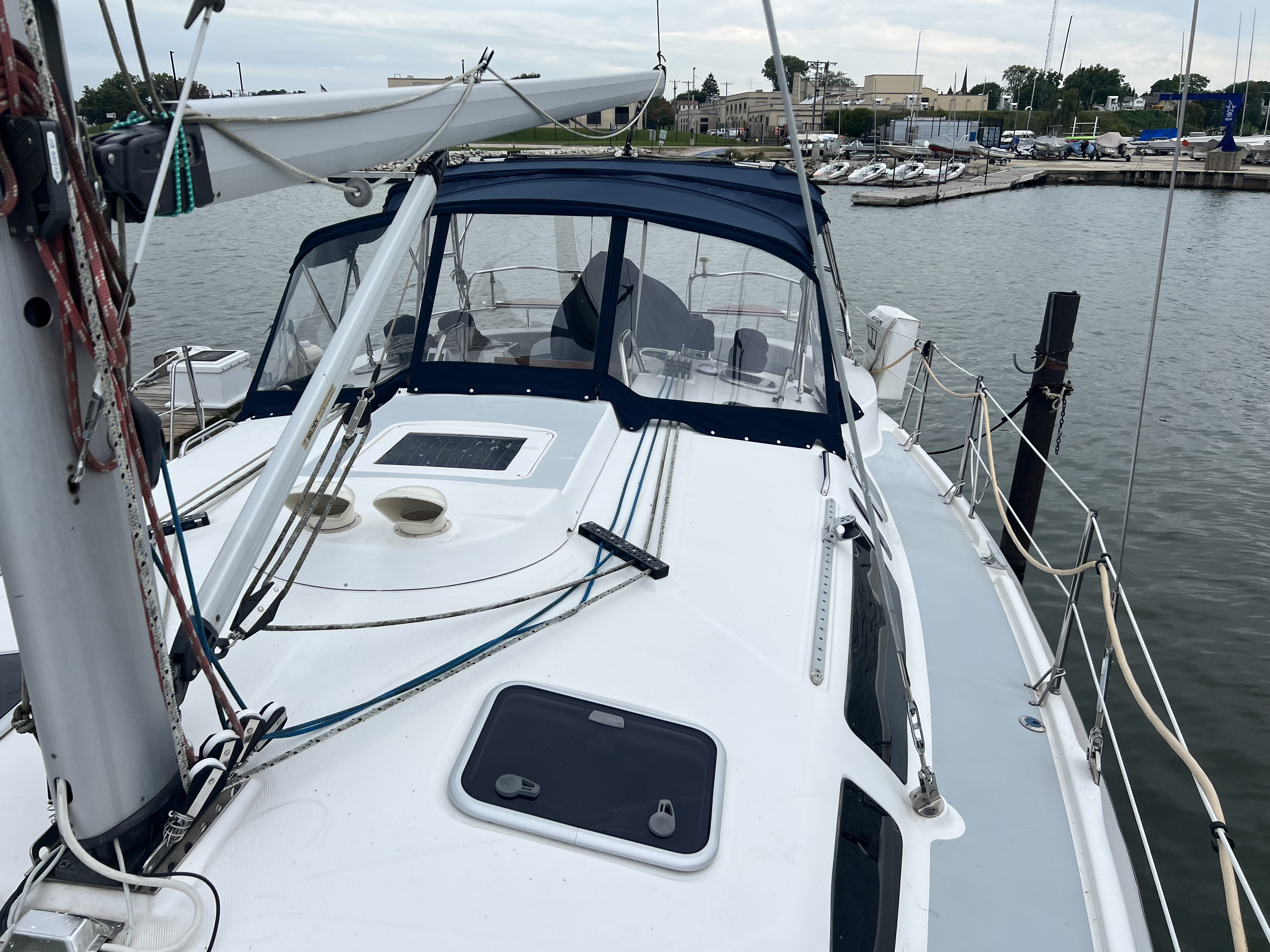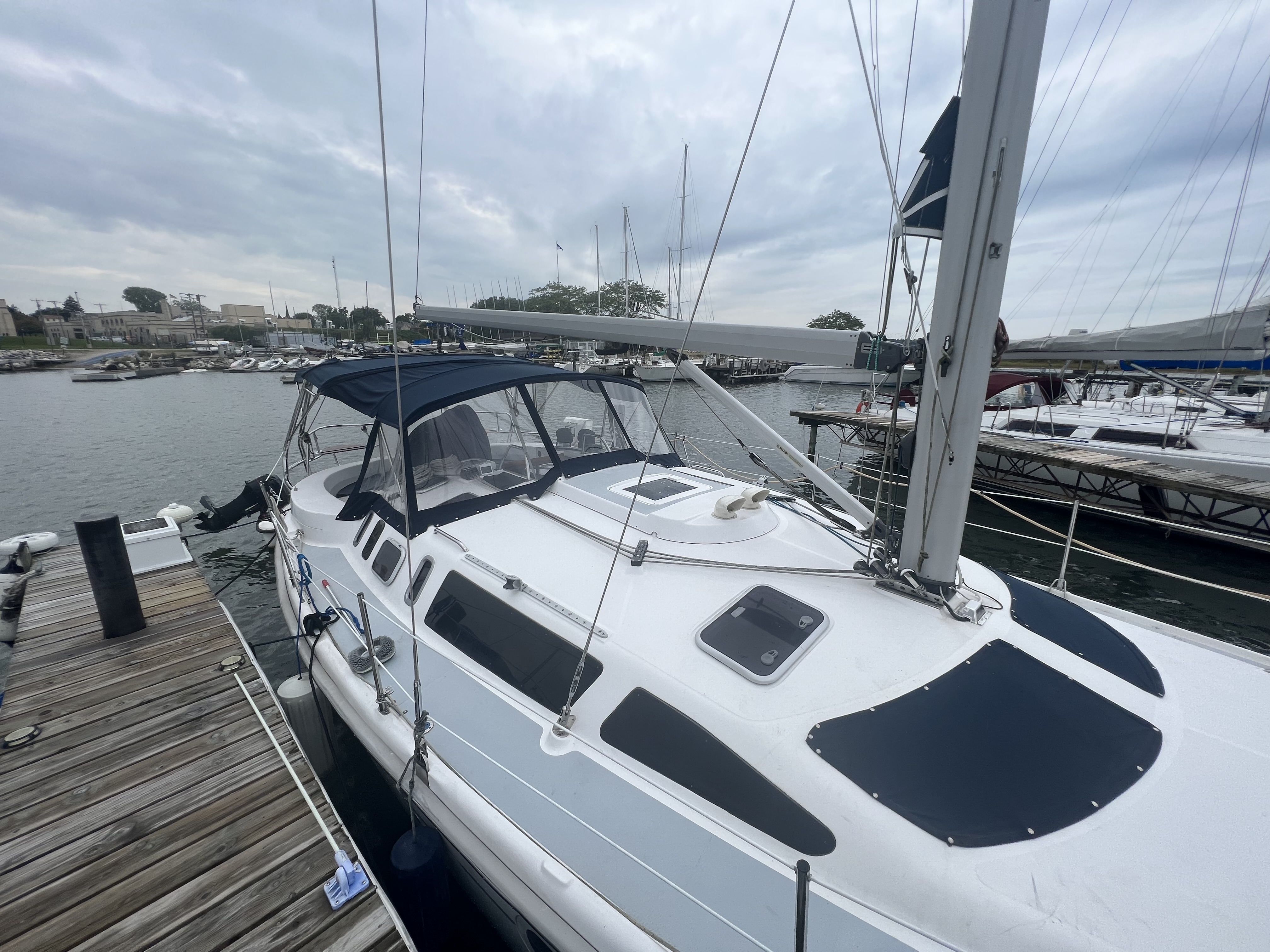 This Hunter has been maintained very well over its life, kept on the Great Lake Michigan. Take your family sailing in comfort and let your worries sail away with this Hunter 410. Full electronic package including Raymarine radar and Raytheon 60 series autopilot. Below deck you will find a deep freezer / refrigerator , microwave, and a 3 burner stove / oven for preparing meals. Maxi-Prop folding propeller.