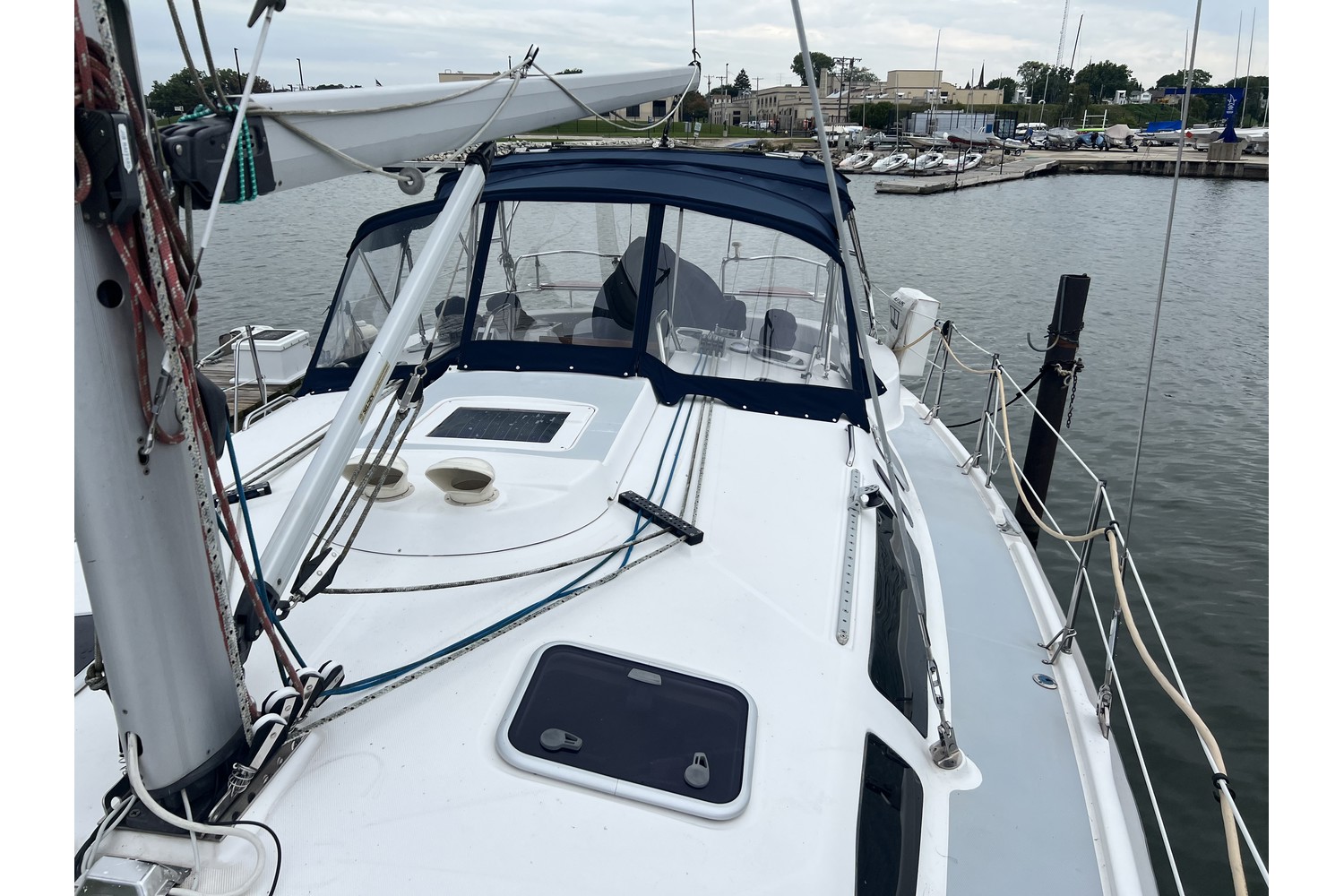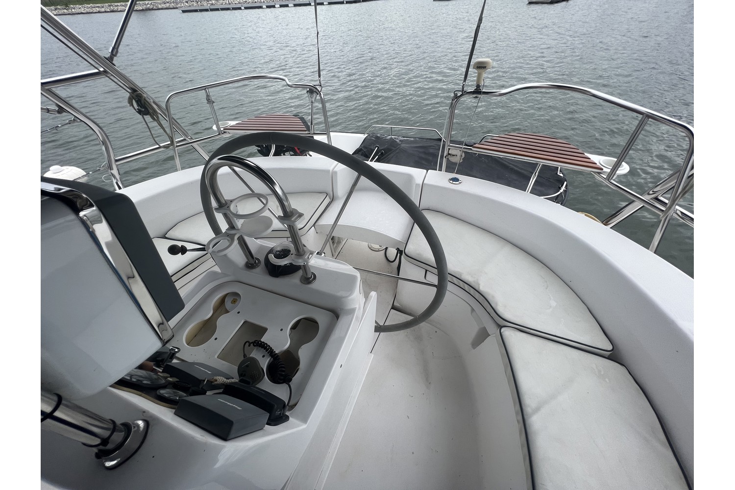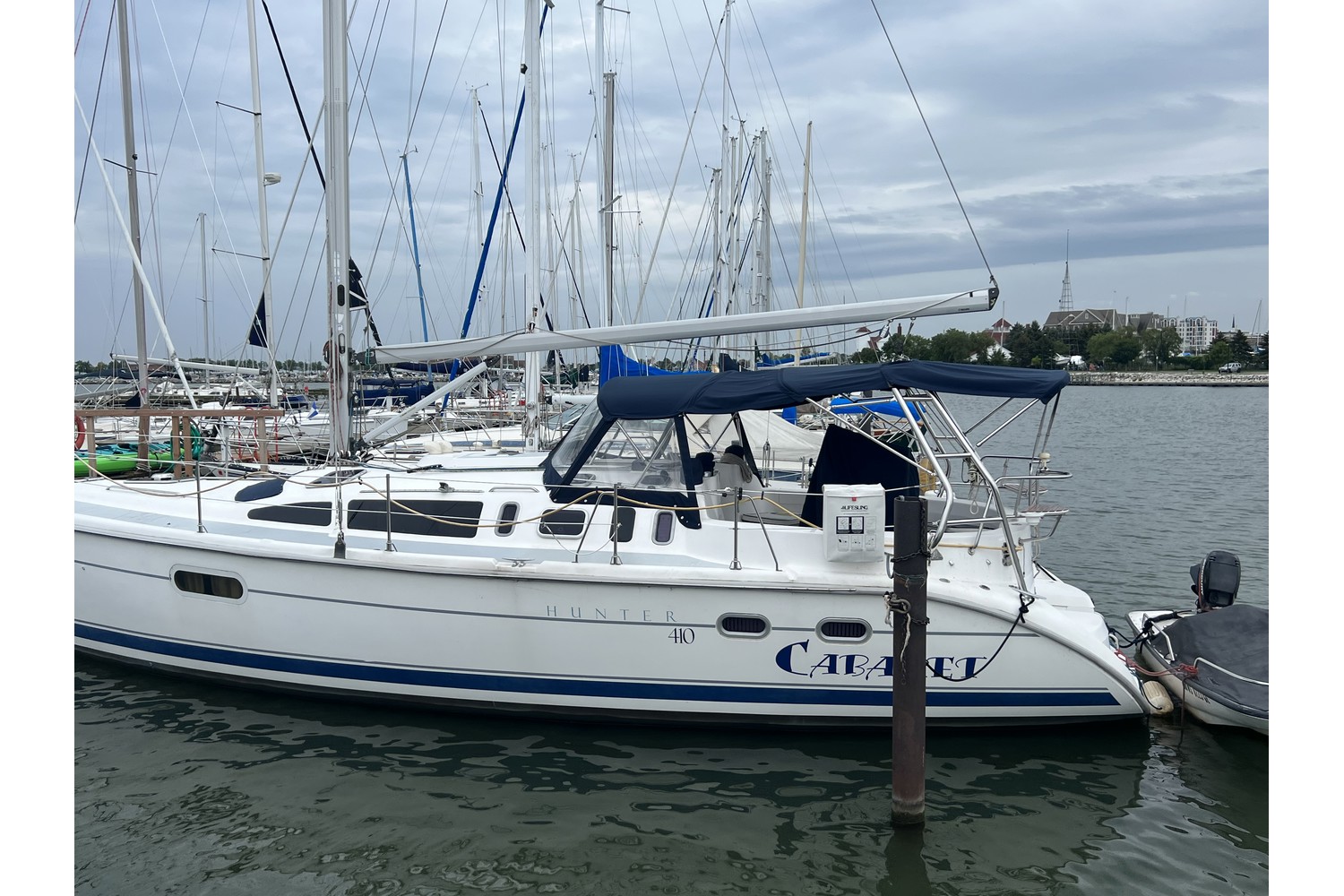 This Hunter has been maintained quite well over its life, kept on the Great Lake Michigan and moored at the Racine Yacht Club. Take your family sailing in comfort and let your worries sail away with this Hunter 410. Full electronic package including Raymarine radar and Raytheon 60 series autopilot. Below deck you will find a deep freezer / refrigerator , microwave, and a 3 burner stove / oven for preparing meals. Maxi-Prop folding propeller.