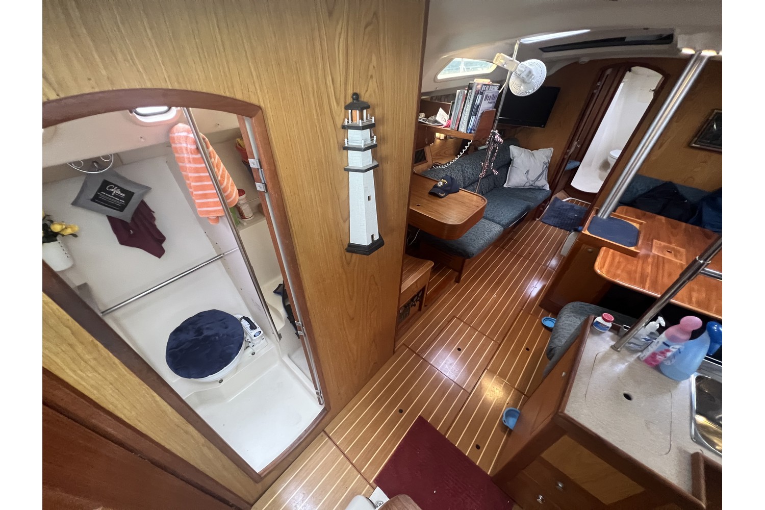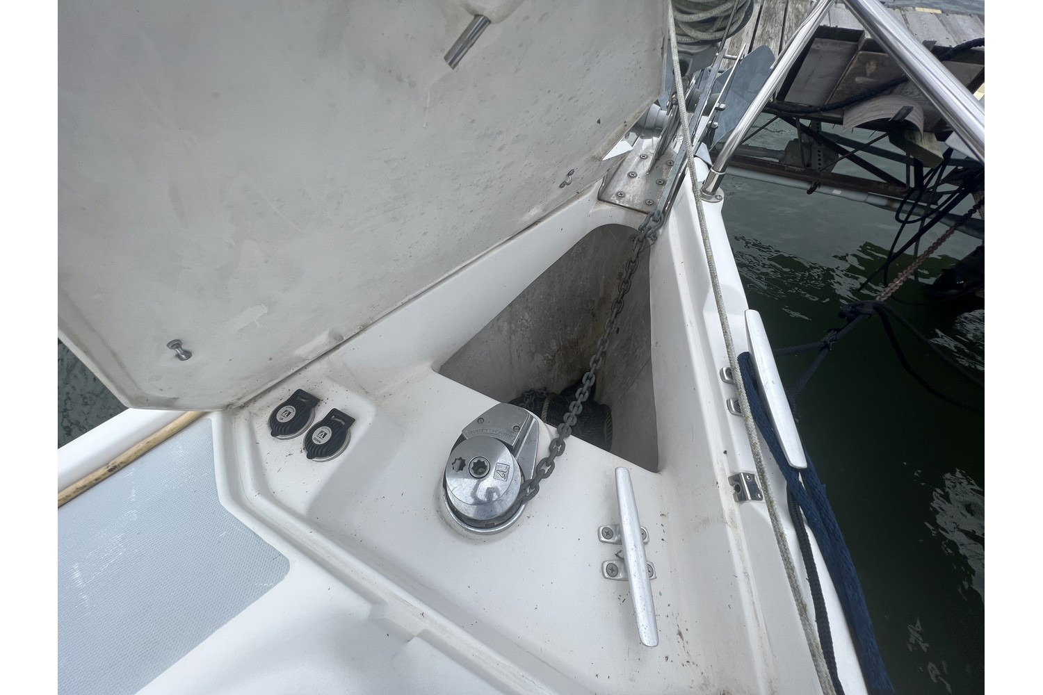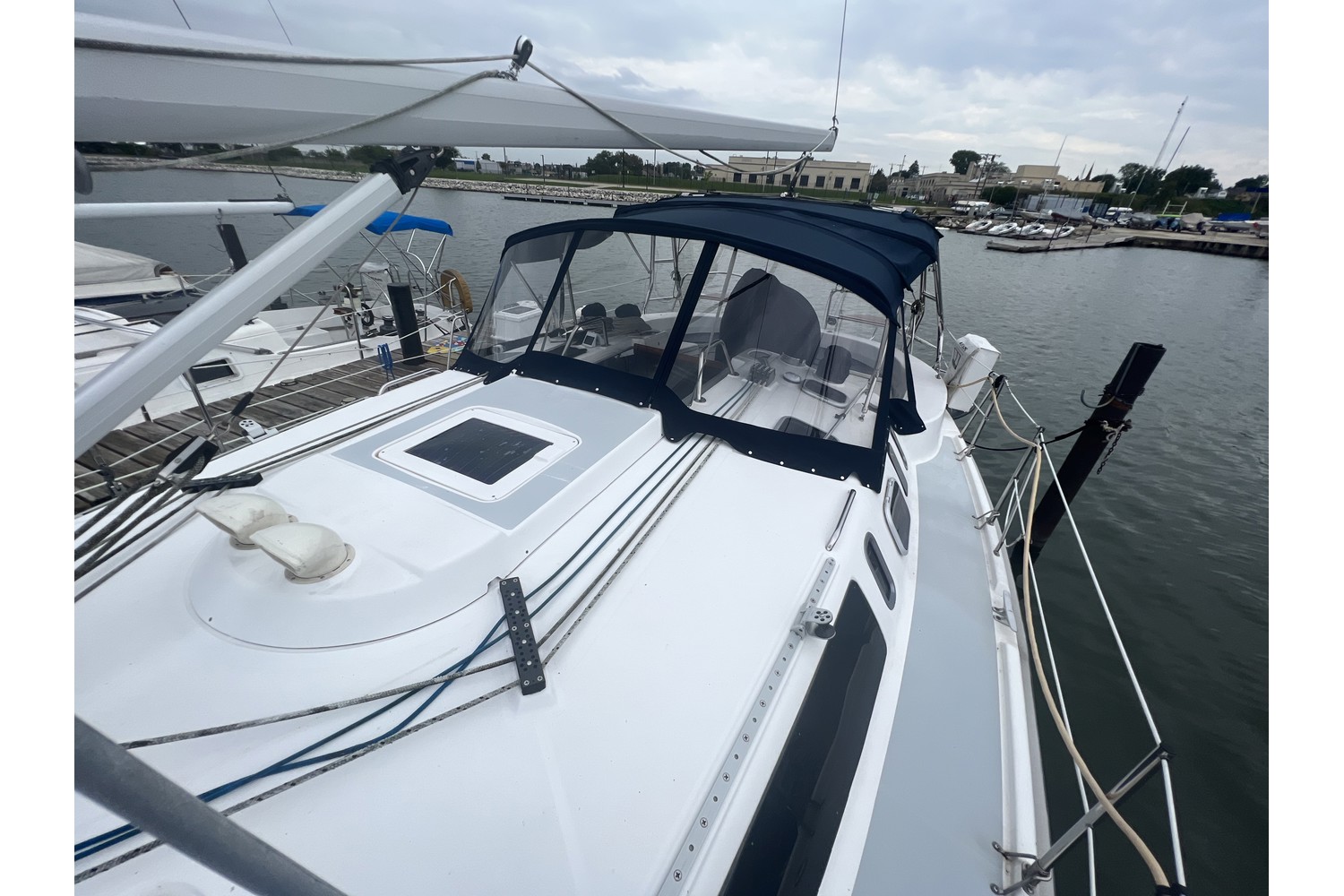 This Hunter has been maintained quite well over its life, kept on the Great Lake Michigan and moored at the Racine Yacht Club. Take your family sailing in comfort and let your worries sail away with this Hunter 410. Full electronic package including Raymarine radar and Raytheon 60 series autopilot. Below deck you will find a deep freezer / refrigerator , microwave, and a 3 burner stove / oven for preparing meals. Maxi-Prop folding propeller.