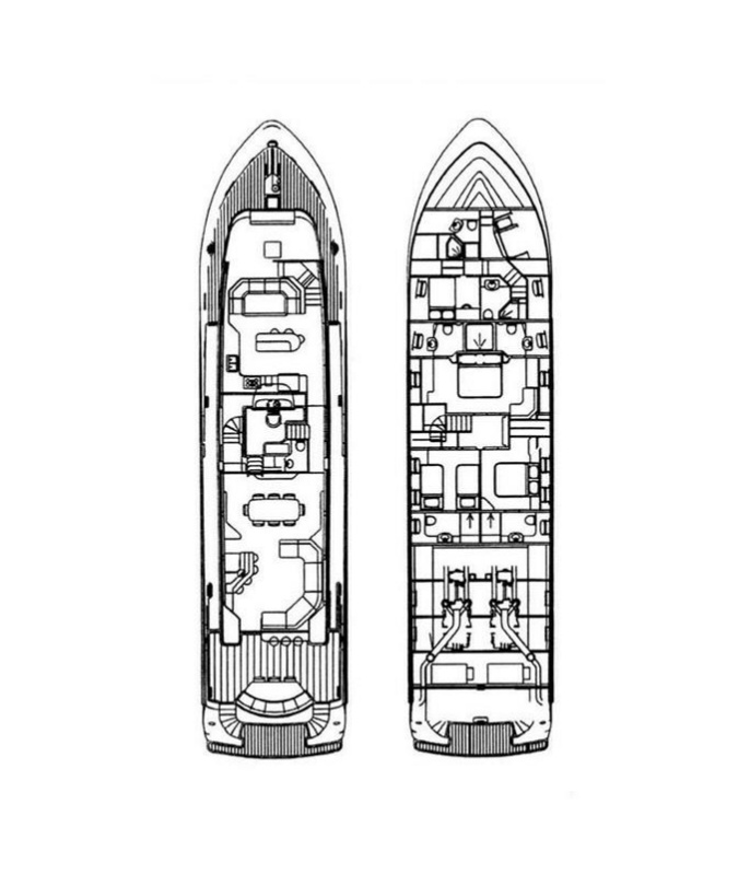 • California Air Compressor, (2) 12-person life rafts, generator starters, main electrical panel, hydraulic hoses, battery charger, all new batteries, galley & captain’s cabin AC systems, anodes, antifoul paint, (2) new icemakers, complete entertainment & navigation system upgrades, CCTV system, LED interior & exterior lights, Jacuzzi, Aqua Bana Party Bana, all new bedding, new galley flooring, stern paint, new teak stairs, new carpets, shaft seals, stabilizer seals & hoses, new aft deck teak chairs, (2) new circulation pumps