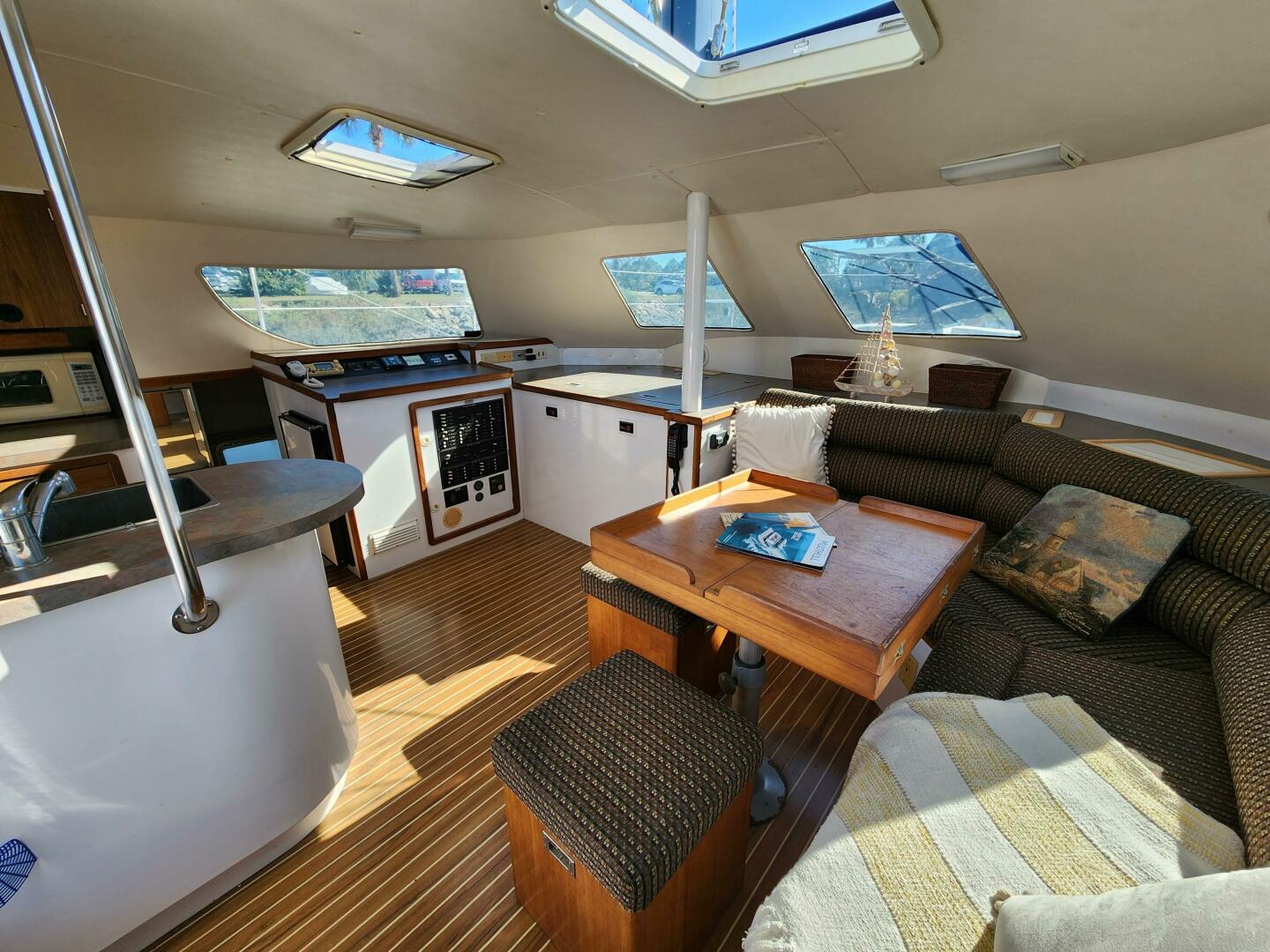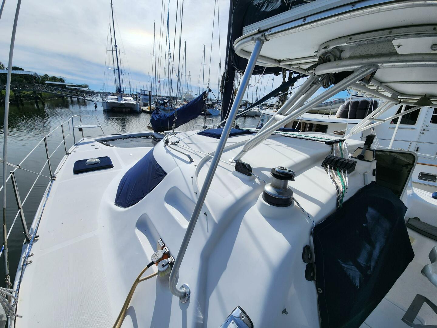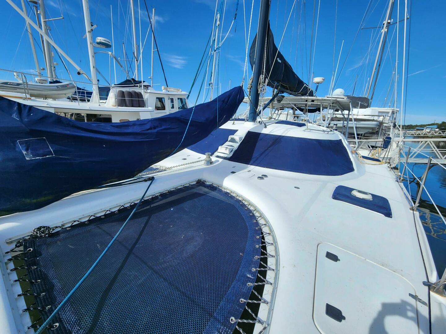 Built in Sarasota, Florida to very high standards, Manta Catamarans have an excellent reputation as serious offshore catamarans that can easily be single handed. They are especially known for their built in safety features such as the laminated hull to deck joint and collision bulkheads creating watertight compartments in the ends of each hull.Exodus has been with the current owners since 2005. She features newer sails (new main, jib and spinnaker), running rigging (Nov 2023), trampoline (Nov 2023), standing rigging replaced in 2014, water maker, generator, washer/dryer, reverse cycle a/c, electric winch, self-tailing jib, hardtop bimini, a dive tank with hookah rig that allows the owners to clean and inspect boat bottom easily and much more. AB dinghy and 15hp Yamaha outboard are included in the sale.Please check out the 360 degree immersive tour to virtually walk through this Manta 42. ElectronicsFull set of Raymarine Hybrid System instruments (multifunctional Chartplotter, wind, speed, depth and autopilot, 2014)Lowrance EliteStandard Horizon Matrix AIS GX2100 VHF/AIS RadioTracvision M5 satelliteBoss StereoRitchie CompassGlomex amplifier for TV antenna gain controlFlat screen TV Electrical and Plumbing(6) Duracell 6v 105 amp House Batteries (New in May 2023)(2) Group 27 12v Starter Batteries (New in May 2023)(6) 65 Watt Siemens Solar PanelsXantrex TrueCharge2 20a battery charger and charge control and monitoringIPN ProRemote Blue Sky Energy charge control and monitoringKisae 2500 watt Power Inverter Vector 800 Watt Peak Power Inverter(2) 30 amp shore power cablesSpectra Water MakerSeaward hot water 11 gallons(2) Freshwater electric marine toilets MechanicalThere are around 4000 hours on her Twin Volvo MD2030 Diesel Engines and 1837 hours on her Next Gen Generator (converted to produce DC power).Twin 2000 30hp Volvo Penta MD2030D Diesel Engines (approx. 4000 hours, meter stopped working, owner keeps hour log)Volvo diesels located port and starboard under bedsNext Generation 200 Amp DC diesel Generator (1837 hours) Generator locker in port bow forward Two Volvo folding propellers with replaceable bushingsCruisAir SXR16 reverse cycle heat and cooling with SMX II control (behind salon settee)CruisAir STX10 reverse cycle heat and cooling with SMX II control (in cockpit storage locker) Sails, Rigging and CanvasSails are by Mack Sails, includes stack pack and lazy jacksRunning rigging new in Nov 2023Standing rigging new in 2014Harken 44.2 ST two-speed self-tailing winchSingle Spinlock XTS power winch59' 6" Mast height Main and jib sail covers/stackpackHatch and window canvas covers as well as instrument canvas coverDodger enclosure stored below, color white (missing one panel)Cockpit cushions Ground Tackle and DeckTrampolines (new Nov 2023)Maxwell 1200 windlass, Maxwell P19045 solenoid55 lb Rocna anchor with 120’ galvanized 3/8” chain and kelletSpare delta anchor with rodeSpare danforth anchor with rodeAnchor washdown and hose in port general locker Outdoor hot/cold fresh water shower in starboard stairwayRetractable folding 3-step boarding ladders at bottom of port and starboard stairwayAmple seating in cockpit, forward bench seats port and starboardMolded steps to access mast/top deckHard top Bimini, Sturdy radar arch/dinghy davits system GalleyAlder Barbour top-loading 10 cubic ft. combination divided refrigerator/freezer (adjacent to the Nav Station forward of the galley)Small drink refrigerator (built into side of nav station)Princess three burner/oven propane stoveMicrowaveSpacious countertopDouble stainless steel sinkHot/cold water mixer faucetMultiple upper and lower cabinet storage and drawersSafety EquipmentBosun’s chairMOBLife slingFront para anchor and rear drogueAdditional ItemsYamaha 15 hp electric start outboardAB dinghy with depth finder set upDive tank with hookah rig for easy diving underneath the boatManta Owner’s manual, various operating and repair manuals and maintenance logs with many spares includedWeber Q cockpit Grill(2) 20lb Propane tanks(2) Fold-up mesh floats(2) Fold-up cockpit seats AccommodationsThis catamaran is the 3 stateroom, 2 head layout. The port hull features the owner's primary stateroom with queen sized bed aft, ample storage and head and separate shower forward. As well as companionway pantry storage and bookcases. The starboard hull has an aft queen-size bed stateroom and a forward guest or storage stateroom with washer/dryer. The guest head to starboard is shared and there are built-in bookcase lines the companionway. The salon is open and there is a u-shaped galley and nav station.Materials throughout:Interior finish is a blend of Formica, vinyl and acrylicVarnished teak moldingsVinyl headliner and carpet on stateroom wallsLouvered teak doorsHighly durable synthetic teak and holly soles6’ 2” Headroom.ConstructionMantas are well known for their solid construction and built in safety features.The hull, deck, bulkheads and sub-sole are vacuumed bagged using a varying lamination schedule of biaxial, triaxial and unidirectional cloth, cored with Core Cell ( hull & deck) and Nida Core honeycomb coring (bulkheads, sub-sole) and laminated with vinylester and isophthalic resins. Wetted surfaces below the waterline are solid GRP construction with vinylester resin. Above the waterline in the hull and deck isophthalic resin is used.In the areas of thru-hulls, chainplates and deck hardware the construction is solid GRP. All deck hardware is thru-bolted with aluminum backing plates laminated into the respective location. Manta further uses Kevlar in the bow and keel areas. Thru-hull fittings and sea cocks are non-corrosive Marelon. The hull-to-deck bond is done with 3M 5200 marine adhesive/sealant and reinforced with 360-degree unidirectional laminates on the inside of the hull/deck bond for additional structural integrity and stiffness, creating a monocoque structure. The hull/deck seam is then finished with a heavy-duty vinyl rub rail.