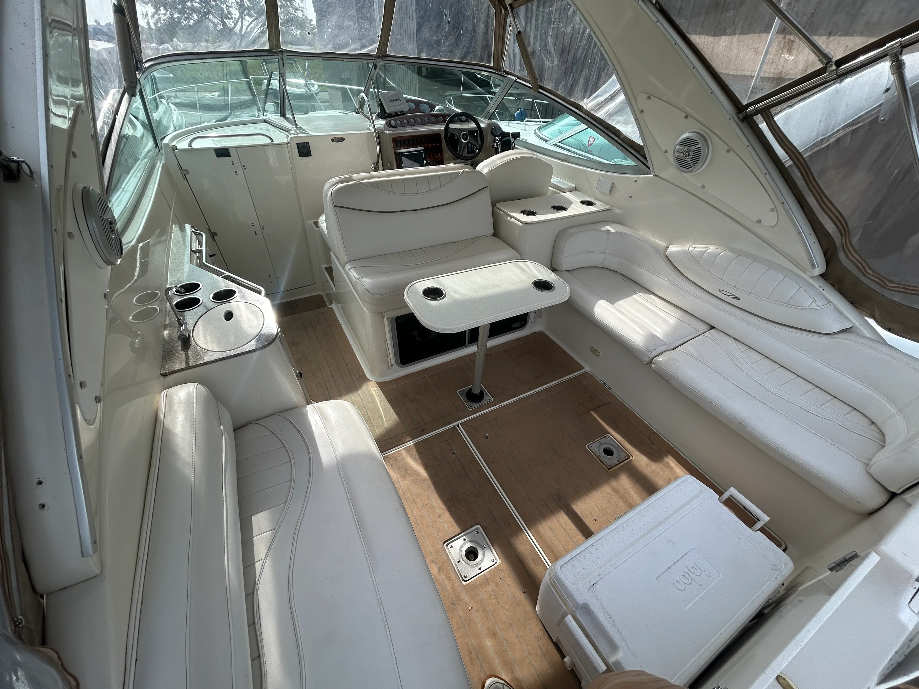 2000 Maxum 3300 SCR – A Fantastic Opportunity for First-Time Boaters If you’ve been dreaming about getting into boating, this 2000 Maxum 3300 SCR is a great way to make it happen. It’s the perfect size for new boaters: easy to handle, spacious enough to be comfortable, and packed with the features you need to hit the water right away without a huge learning curve or massive investment. This freshwater-kept cruiser is powered by twin MerCruiser 5.7L engines with low hours, offering solid, reliable performance for years to come. With hydraulic steering, trim tabs, and underwater exhaust, the ride is smooth, quiet, and enjoyable — exactly what you want as you build confidence behind the helm. One of the standout features is the upgraded Garmin 7607 XSV chartplotter/GPS, a huge plus for anyone just getting started with navigation. Add in a VHF radio, depth sounder, compass, and a Fusion Bluetooth stereo, and you’ve got a modern, well-equipped helm ready for day trips, weekend getaways, or casual cruising. Step inside, and you’ll find a comfortable cabin layout that sleeps up to six, with air conditioning, 2 flat screen TV's, and a dinette for relaxing or meals onboard. The full galley includes an electric stove, refrigerator, hot water heater, and pressure water system, so whether you’re staying the night or just hosting friends for the afternoon, you’re fully set up. The boat also features a full camper canvas enclosure with mesh windows, giving you extended protection and ventilation for longer stays or changing weather conditions. It’s a big step up from a basic bimini and helps extend your boating season comfortably. A clean 2021 survey is available, and while the boat could benefit from a few light cosmetic updates, it’s in solid shape and ready to enjoy right now. It’s a great fit for someone who’s ready to learn, make a few upgrades over time, and get out on the water without overextending. Backed by Skipper Buds’ trusted dealership and service team, this Maxum 3300 SCR is a fantastic opportunity to step into boating with confidence, comfort, and everything you need to start your next adventure.