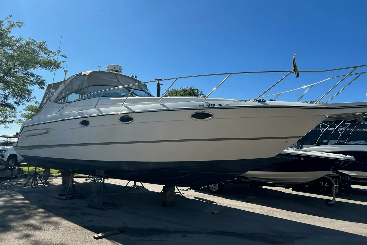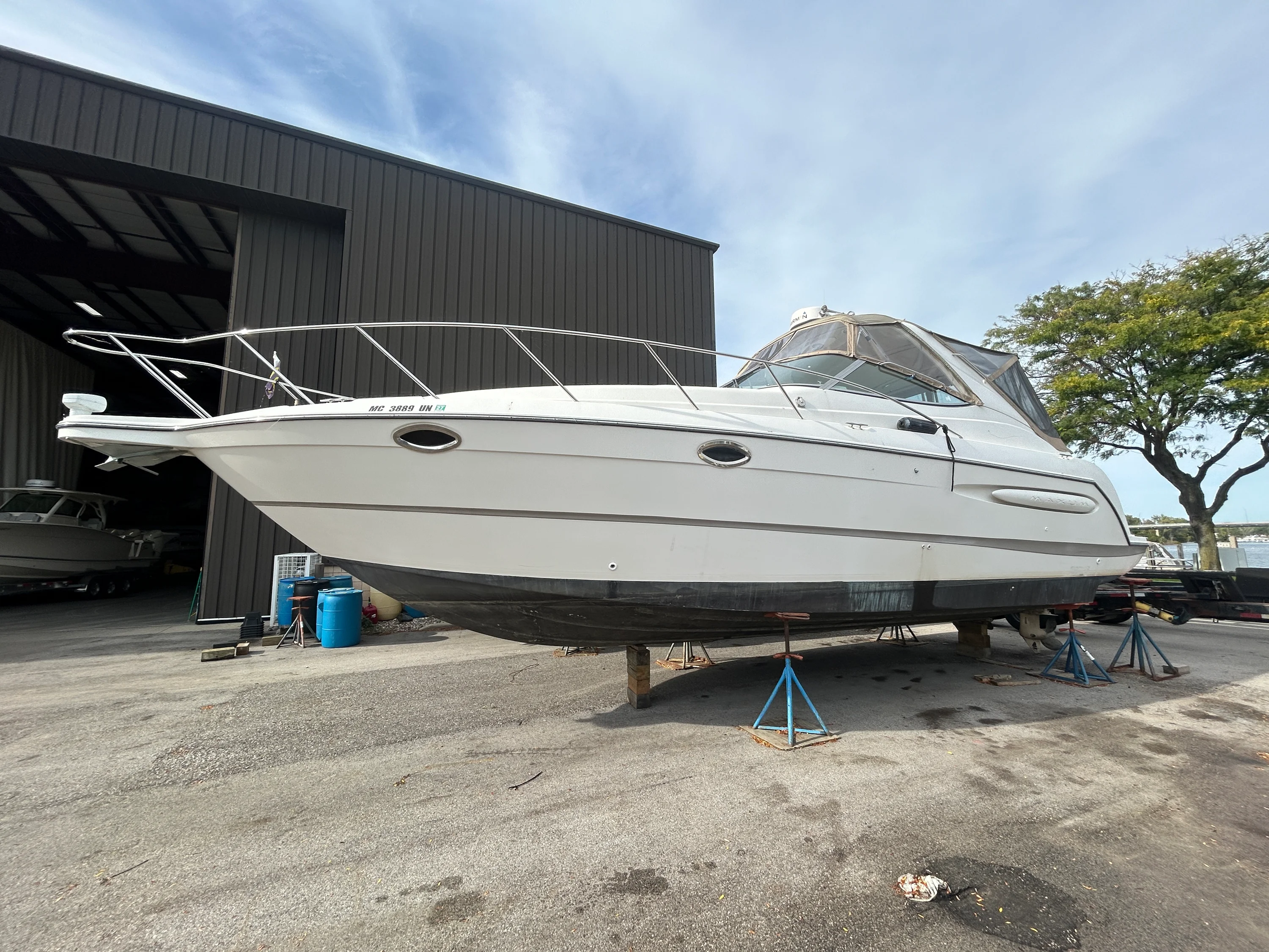 2000 Maxum 3300 SCR – A Fantastic Opportunity for First-Time Boaters If you’ve been dreaming about getting into boating, this 2000 Maxum 3300 SCR is a great way to make it happen. It’s the perfect size for new boaters: easy to handle, spacious enough to be comfortable, and packed with the features you need to hit the water right away without a huge learning curve or massive investment. This freshwater-kept cruiser is powered by twin MerCruiser 5.7L engines with low hours, offering solid, reliable performance for years to come. With hydraulic steering, trim tabs, and underwater exhaust, the ride is smooth, quiet, and enjoyable — exactly what you want as you build confidence behind the helm. One of the standout features is the upgraded Garmin 7607 XSV chartplotter/GPS, a huge plus for anyone just getting started with navigation. Add in a VHF radio, depth sounder, compass, and a Fusion Bluetooth stereo, and you’ve got a modern, well-equipped helm ready for day trips, weekend getaways, or casual cruising. Step inside, and you’ll find a comfortable cabin layout that sleeps up to six, with air conditioning, 2 flat screen TV's, and a dinette for relaxing or meals onboard. The full galley includes an electric stove, refrigerator, hot water heater, and pressure water system, so whether you’re staying the night or just hosting friends for the afternoon, you’re fully set up. The boat also features a full camper canvas enclosure with mesh windows, giving you extended protection and ventilation for longer stays or changing weather conditions. It’s a big step up from a basic bimini and helps extend your boating season comfortably. A clean 2021 survey is available, and while the boat could benefit from a few light cosmetic updates, it’s in solid shape and ready to enjoy right now. It’s a great fit for someone who’s ready to learn, make a few upgrades over time, and get out on the water without overextending. Backed by Skipper Buds’ trusted dealership and service team, this Maxum 3300 SCR is a fantastic opportunity to step into boating with confidence, comfort, and everything you need to start your next adventure.