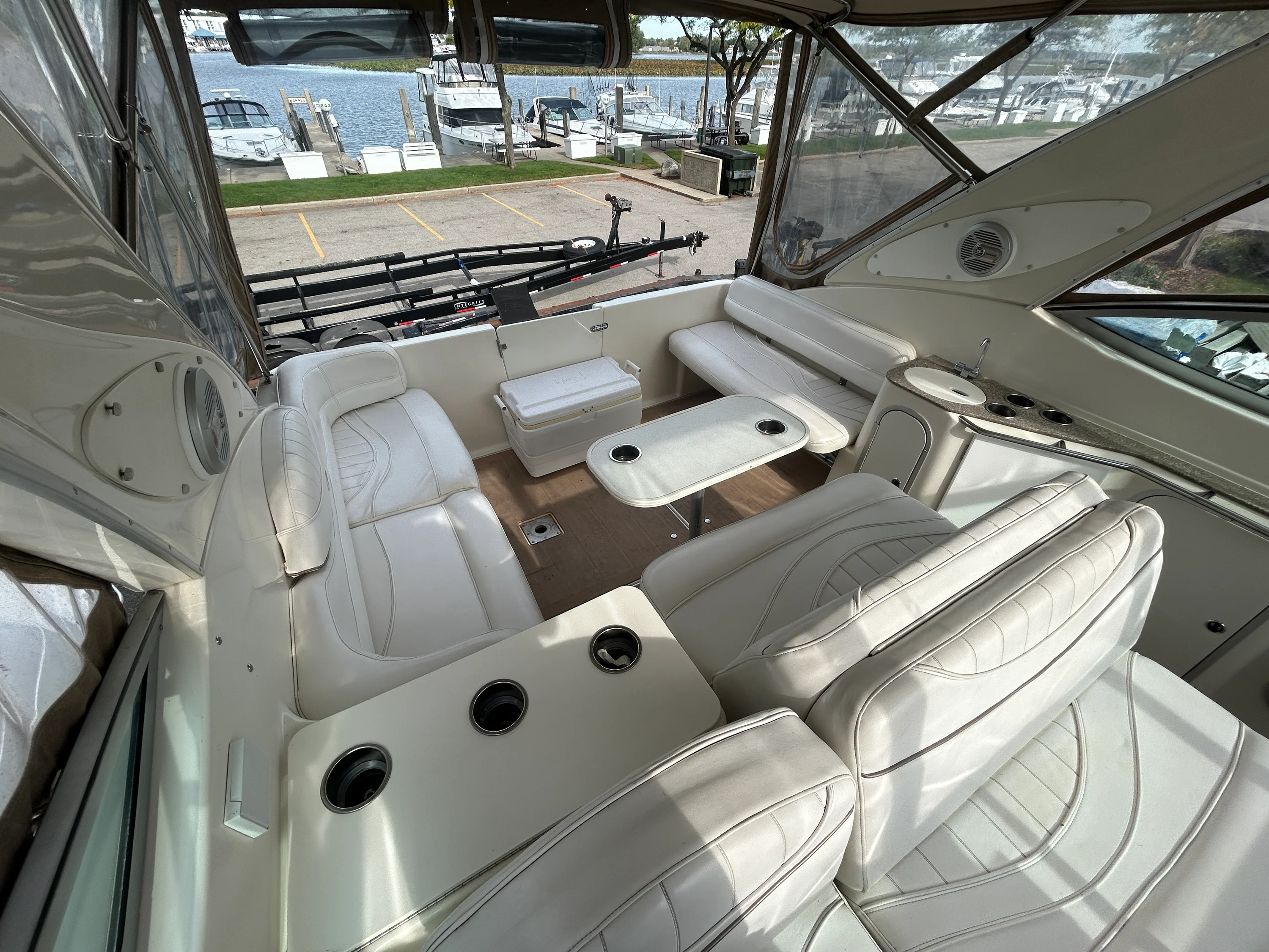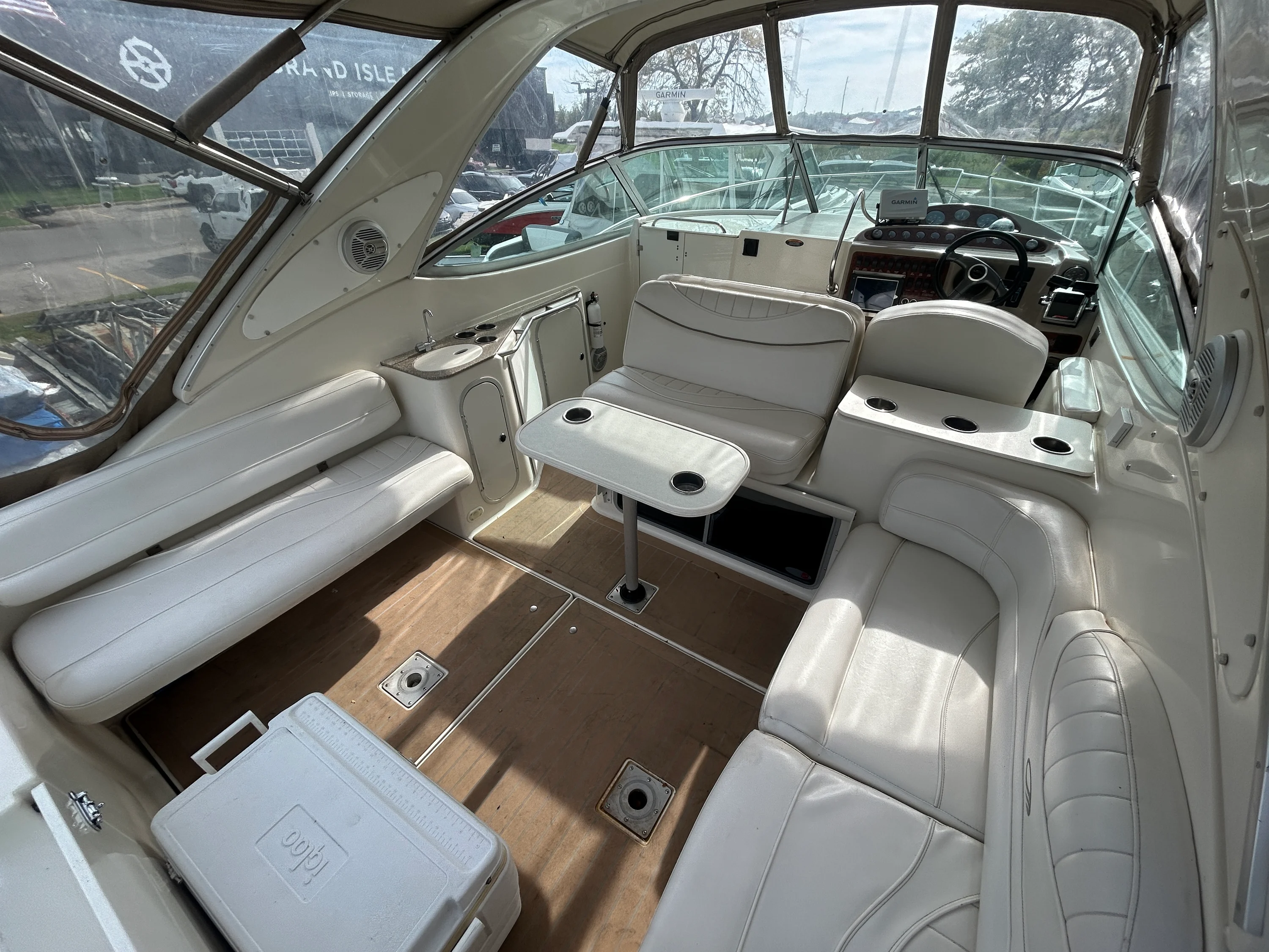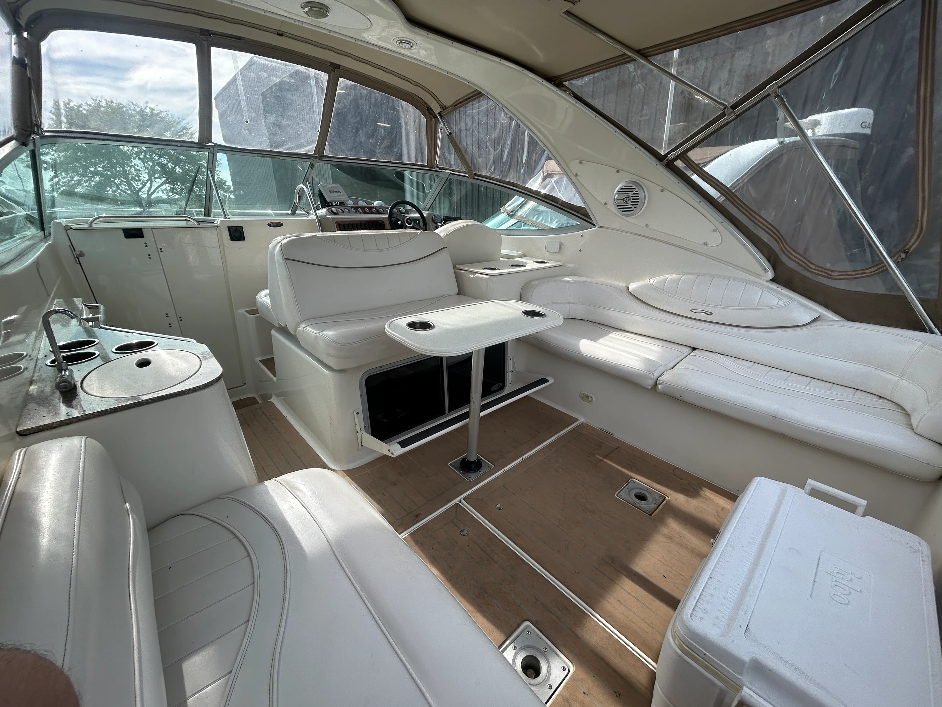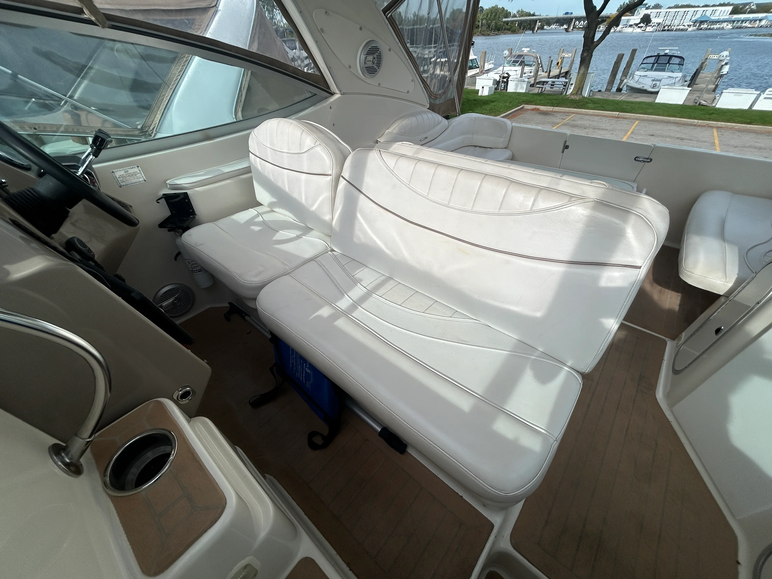 2000 Maxum 3300 SCR – A Fantastic Opportunity for First-Time Boaters If you’ve been dreaming about getting into boating, this 2000 Maxum 3300 SCR is a great way to make it happen. It’s the perfect size for new boaters: easy to handle, spacious enough to be comfortable, and packed with the features you need to hit the water right away without a huge learning curve or massive investment. This freshwater-kept cruiser is powered by twin MerCruiser 5.7L engines with low hours, offering solid, reliable performance for years to come. With hydraulic steering, trim tabs, and underwater exhaust, the ride is smooth, quiet, and enjoyable — exactly what you want as you build confidence behind the helm. One of the standout features is the upgraded Garmin 7607 XSV chartplotter/GPS, a huge plus for anyone just getting started with navigation. Add in a VHF radio, depth sounder, compass, and a Fusion Bluetooth stereo, and you’ve got a modern, well-equipped helm ready for day trips, weekend getaways, or casual cruising. Step inside, and you’ll find a comfortable cabin layout that sleeps up to six, with air conditioning, 2 flat screen TV's, and a dinette for relaxing or meals onboard. The full galley includes an electric stove, refrigerator, hot water heater, and pressure water system, so whether you’re staying the night or just hosting friends for the afternoon, you’re fully set up. The boat also features a full camper canvas enclosure with mesh windows, giving you extended protection and ventilation for longer stays or changing weather conditions. It’s a big step up from a basic bimini and helps extend your boating season comfortably. A clean 2021 survey is available, and while the boat could benefit from a few light cosmetic updates, it’s in solid shape and ready to enjoy right now. It’s a great fit for someone who’s ready to learn, make a few upgrades over time, and get out on the water without overextending. Backed by Skipper Buds’ trusted dealership and service team, this Maxum 3300 SCR is a fantastic opportunity to step into boating with confidence, comfort, and everything you need to start your next adventure.