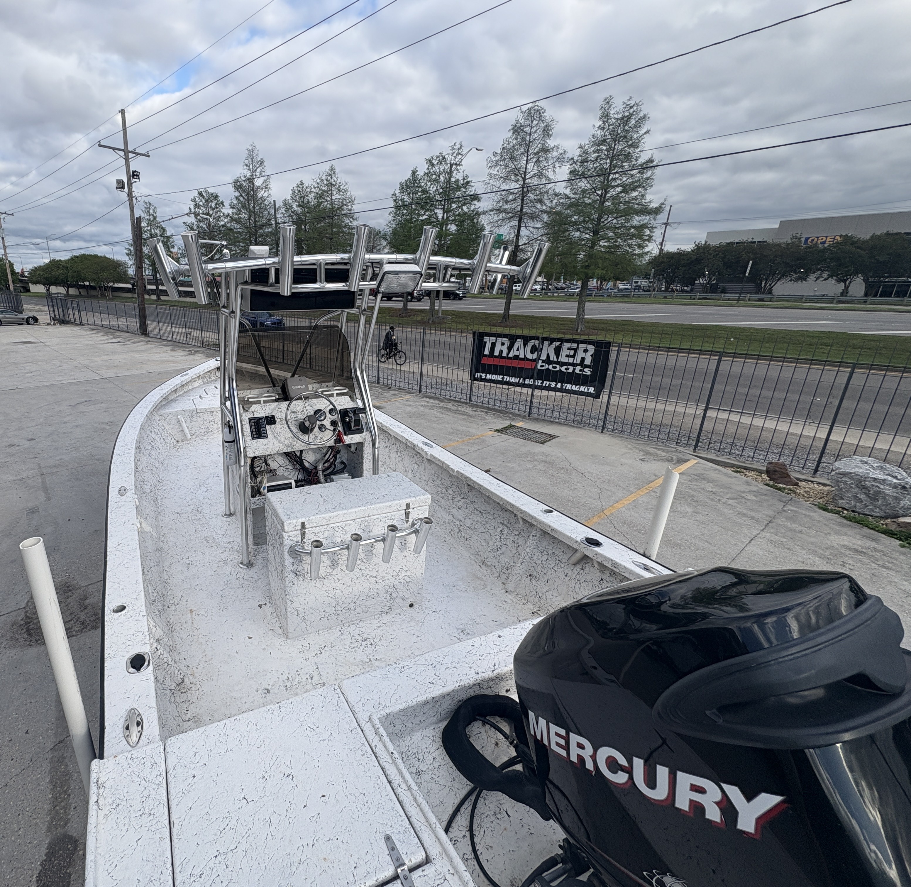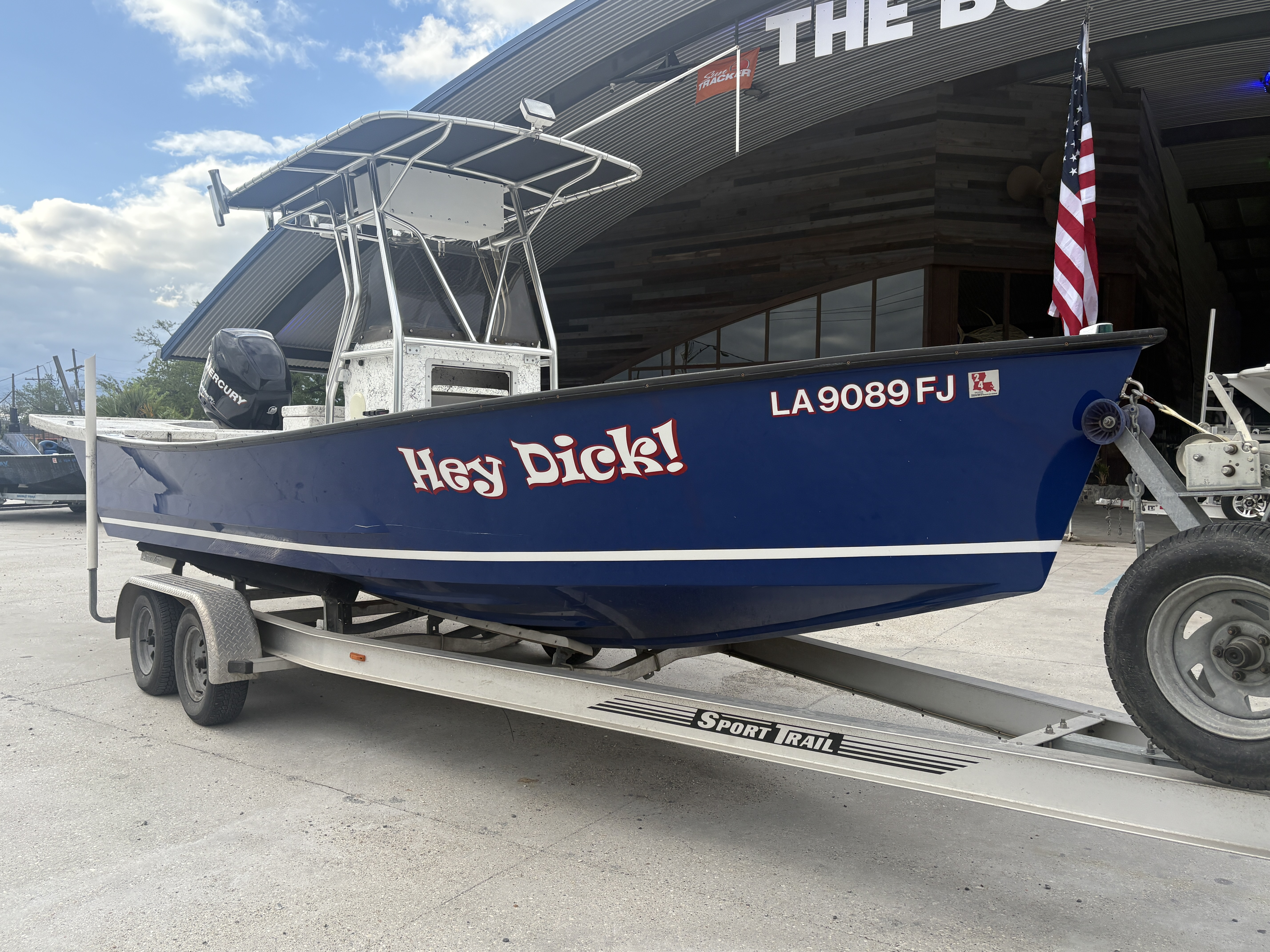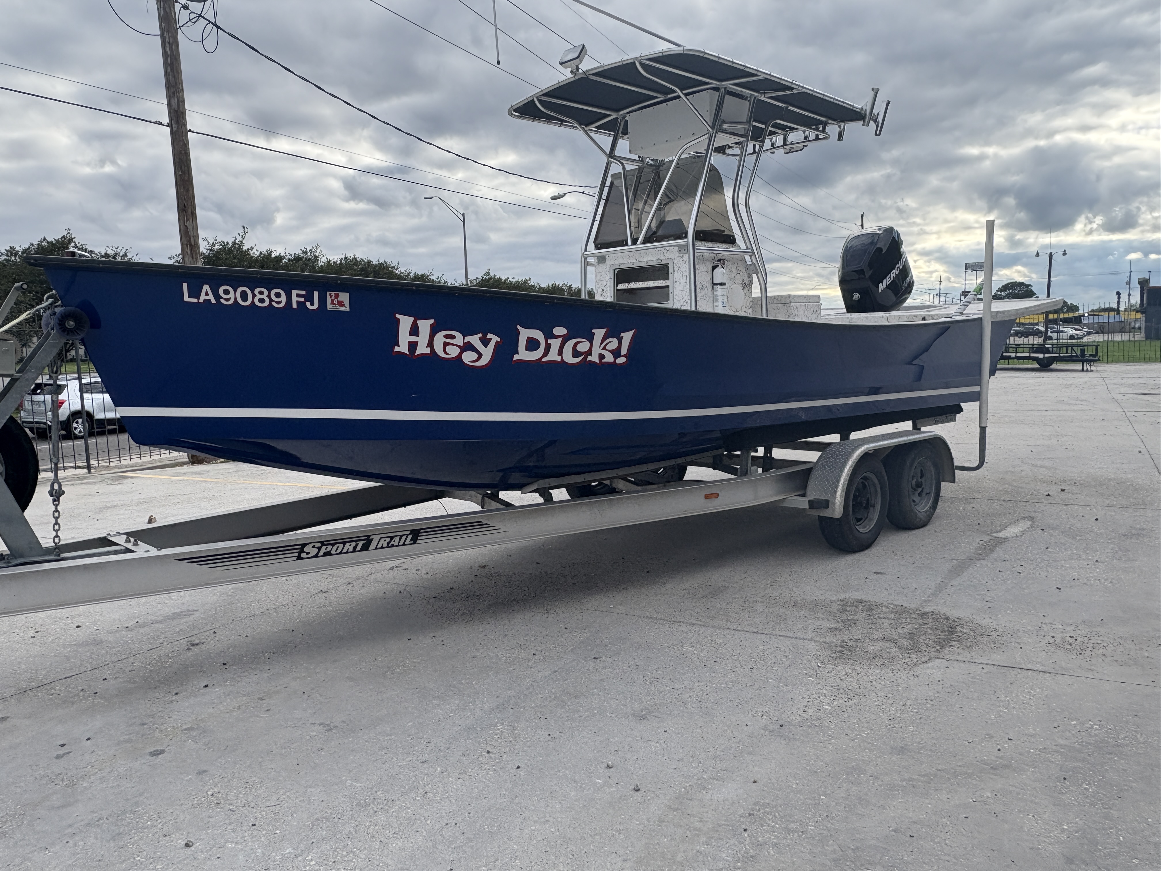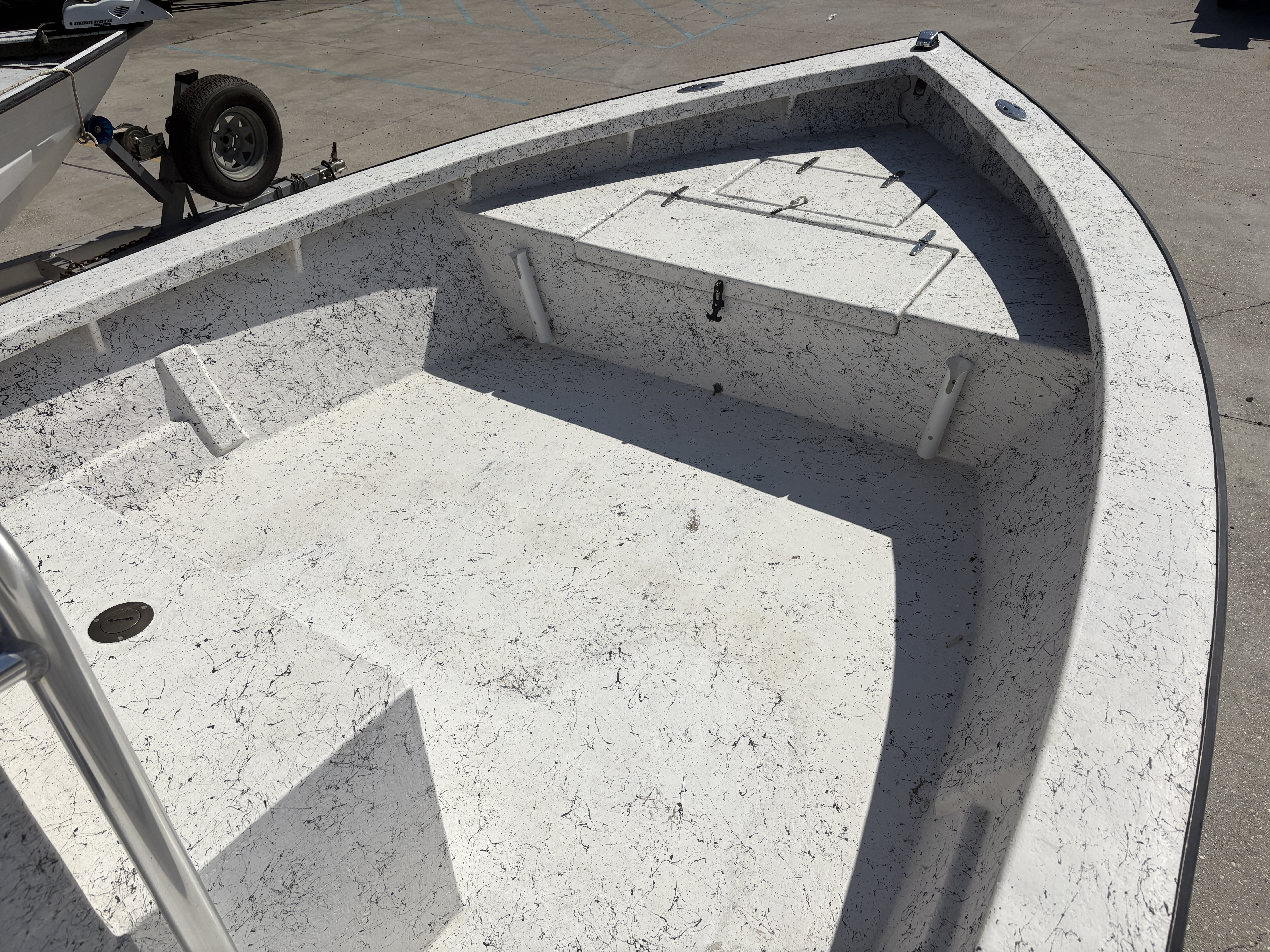 The Reno Skiff 23 with a fan tail is a versatile and rugged fishing and recreational boat, designed for both shallow water and offshore environments. With a length of 23 feet, it offers a spacious deck layout, ideal for fishing, cruising, or family outings. The fan tail design, often called a "flared" or "reverse transom," enhances the boat's stability and maneuverability, especially in choppy or rough water conditions. This feature also allows for easier boarding and better handling when backing into docks or shorelines.