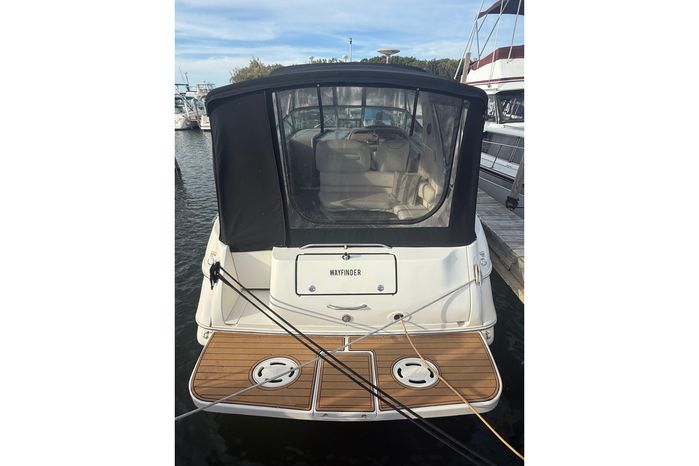 Freshwater / Great Lakes boat since new this vessel features Twin MerCruiser 350-Magnum 300-hp Gas Engine's with MAG MPI 350 V-Drive Engines (Note: Starboard Engine Replaced 2025 with only 35 hours). Notable features include but are not limited to the following: Air-Conditioning & Heat, Head (Vacuflush) w/Vanity/Sink/Shower, Windlass Anchor, Garmin Color Chartplotter, Raytheoon VHF Radio, Premium Stereo system with CD Player, Cockpit Speakers, Cockpit Wet Bar w/Sink, New Aquadek on swim platform, Canvas Package (Camper Top w/Strata-Glass & Screens), Snap-in Snap-out Cockpit Carpeting, and MUCH more!