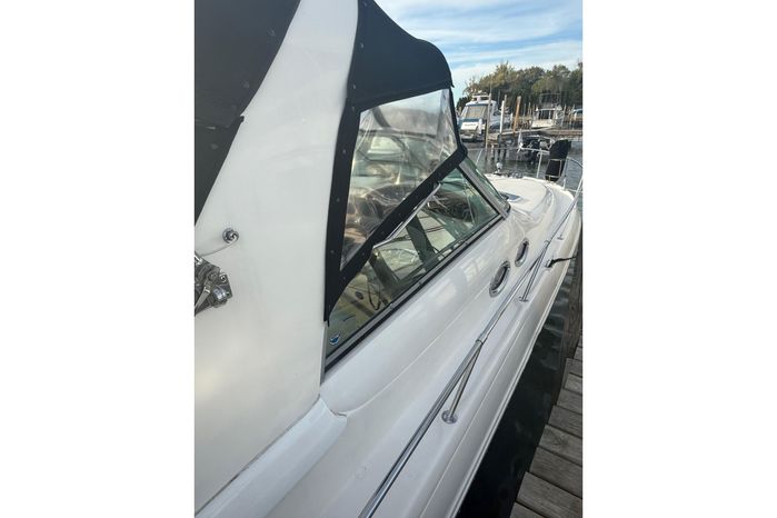 Freshwater / Great Lakes boat since new this vessel features Twin MerCruiser 350-Magnum 300-hp Gas Engine's with MAG MPI 350 V-Drive Engines (Note: Starboard Engine Replaced 2025 with only 35 hours). Notable features include but are not limited to the following: Air-Conditioning & Heat, Head (Vacuflush) w/Vanity/Sink/Shower, Windlass Anchor, Garmin Color Chartplotter, Raytheoon VHF Radio, Premium Stereo system with CD Player, Cockpit Speakers, Cockpit Wet Bar w/Sink, New Aquadek on swim platform, Canvas Package (Camper Top w/Strata-Glass & Screens), Snap-in Snap-out Cockpit Carpeting, and MUCH more!