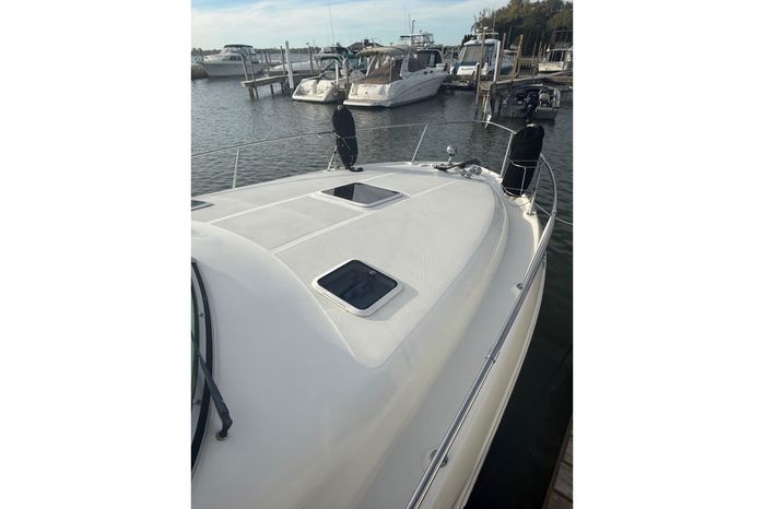 Freshwater / Great Lakes boat since new this vessel features Twin MerCruiser 350-Magnum 300-hp Gas Engine's with MAG MPI 350 V-Drive Engines (Note: Starboard Engine Replaced 2025 with only 35 hours). Notable features include but are not limited to the following: Air-Conditioning & Heat, Head (Vacuflush) w/Vanity/Sink/Shower, Windlass Anchor, Garmin Color Chartplotter, Raytheoon VHF Radio, Premium Stereo system with CD Player, Cockpit Speakers, Cockpit Wet Bar w/Sink, New Aquadek on swim platform, Canvas Package (Camper Top w/Strata-Glass & Screens), Snap-in Snap-out Cockpit Carpeting, and MUCH more!