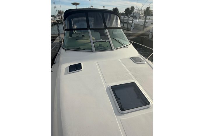 Freshwater / Great Lakes boat since new this vessel features Twin MerCruiser 350-Magnum 300-hp Gas Engine's with MAG MPI 350 V-Drive Engines (Note: Starboard Engine Replaced 2025 with only 35 hours). Notable features include but are not limited to the following: Air-Conditioning & Heat, Head (Vacuflush) w/Vanity/Sink/Shower, Windlass Anchor, Garmin Color Chartplotter, Raytheoon VHF Radio, Premium Stereo system with CD Player, Cockpit Speakers, Cockpit Wet Bar w/Sink, New Aquadek on swim platform, Canvas Package (Camper Top w/Strata-Glass & Screens), Snap-in Snap-out Cockpit Carpeting, and MUCH more!