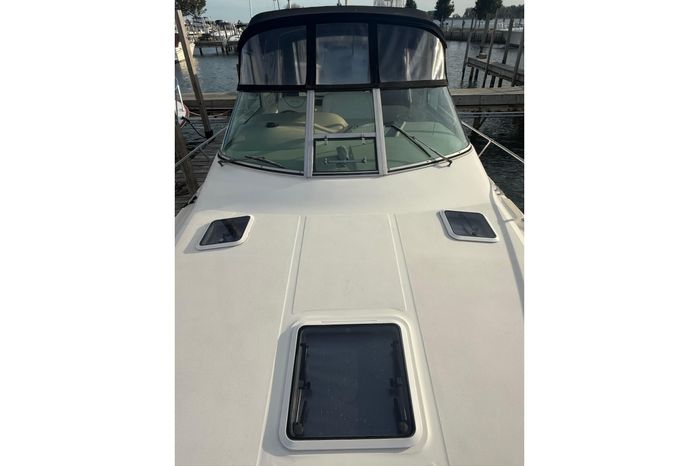 Freshwater / Great Lakes boat since new this vessel features Twin MerCruiser 350-Magnum 300-hp Gas Engine's with MAG MPI 350 V-Drive Engines (Note: Starboard Engine Replaced 2025 with only 35 hours). Notable features include but are not limited to the following: Air-Conditioning & Heat, Head (Vacuflush) w/Vanity/Sink/Shower, Windlass Anchor, Garmin Color Chartplotter, Raytheoon VHF Radio, Premium Stereo system with CD Player, Cockpit Speakers, Cockpit Wet Bar w/Sink, New Aquadek on swim platform, Canvas Package (Camper Top w/Strata-Glass & Screens), Snap-in Snap-out Cockpit Carpeting, and MUCH more!