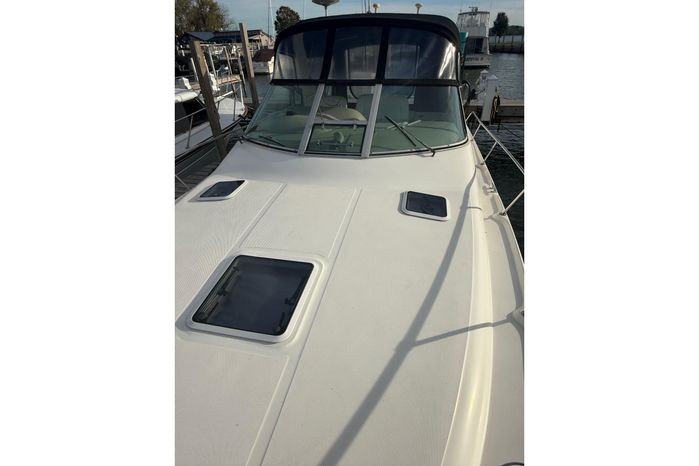Freshwater / Great Lakes boat since new this vessel features Twin MerCruiser 350-Magnum 300-hp Gas Engine's with MAG MPI 350 V-Drive Engines (Note: Starboard Engine Replaced 2025 with only 35 hours). Notable features include but are not limited to the following: Air-Conditioning & Heat, Head (Vacuflush) w/Vanity/Sink/Shower, Windlass Anchor, Garmin Color Chartplotter, Raytheoon VHF Radio, Premium Stereo system with CD Player, Cockpit Speakers, Cockpit Wet Bar w/Sink, New Aquadek on swim platform, Canvas Package (Camper Top w/Strata-Glass & Screens), Snap-in Snap-out Cockpit Carpeting, and MUCH more!