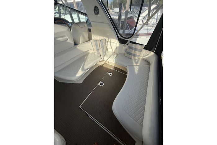 Freshwater / Great Lakes boat since new this vessel features Twin MerCruiser 350-Magnum 300-hp Gas Engine's with MAG MPI 350 V-Drive Engines (Note: Starboard Engine Replaced 2025 with only 35 hours). Notable features include but are not limited to the following: Air-Conditioning & Heat, Head (Vacuflush) w/Vanity/Sink/Shower, Windlass Anchor, Garmin Color Chartplotter, Raytheoon VHF Radio, Premium Stereo system with CD Player, Cockpit Speakers, Cockpit Wet Bar w/Sink, New Aquadek on swim platform, Canvas Package (Camper Top w/Strata-Glass & Screens), Snap-in Snap-out Cockpit Carpeting, and MUCH more!