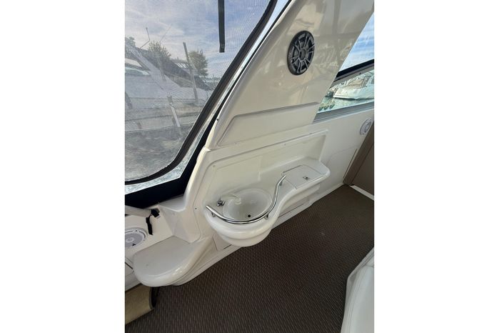 Freshwater / Great Lakes boat since new this vessel features Twin MerCruiser 350-Magnum 300-hp Gas Engine's with MAG MPI 350 V-Drive Engines (Note: Starboard Engine Replaced 2025 with only 35 hours). Notable features include but are not limited to the following: Air-Conditioning & Heat, Head (Vacuflush) w/Vanity/Sink/Shower, Windlass Anchor, Garmin Color Chartplotter, Raytheoon VHF Radio, Premium Stereo system with CD Player, Cockpit Speakers, Cockpit Wet Bar w/Sink, New Aquadek on swim platform, Canvas Package (Camper Top w/Strata-Glass & Screens), Snap-in Snap-out Cockpit Carpeting, and MUCH more!