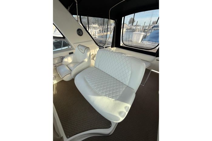 Freshwater / Great Lakes boat since new this vessel features Twin MerCruiser 350-Magnum 300-hp Gas Engine's with MAG MPI 350 V-Drive Engines (Note: Starboard Engine Replaced 2025 with only 35 hours). Notable features include but are not limited to the following: Air-Conditioning & Heat, Head (Vacuflush) w/Vanity/Sink/Shower, Windlass Anchor, Garmin Color Chartplotter, Raytheoon VHF Radio, Premium Stereo system with CD Player, Cockpit Speakers, Cockpit Wet Bar w/Sink, New Aquadek on swim platform, Canvas Package (Camper Top w/Strata-Glass & Screens), Snap-in Snap-out Cockpit Carpeting, and MUCH more!