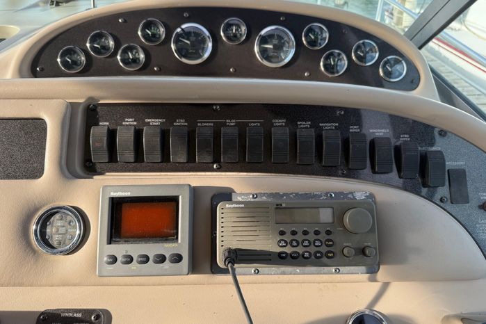 Freshwater / Great Lakes boat since new this vessel features Twin MerCruiser 350-Magnum 300-hp Gas Engine's with MAG MPI 350 V-Drive Engines (Note: Starboard Engine Replaced 2025 with only 35 hours). Notable features include but are not limited to the following: Air-Conditioning & Heat, Head (Vacuflush) w/Vanity/Sink/Shower, Windlass Anchor, Garmin Color Chartplotter, Raytheoon VHF Radio, Premium Stereo system with CD Player, Cockpit Speakers, Cockpit Wet Bar w/Sink, New Aquadek on swim platform, Canvas Package (Camper Top w/Strata-Glass & Screens), Snap-in Snap-out Cockpit Carpeting, and MUCH more!