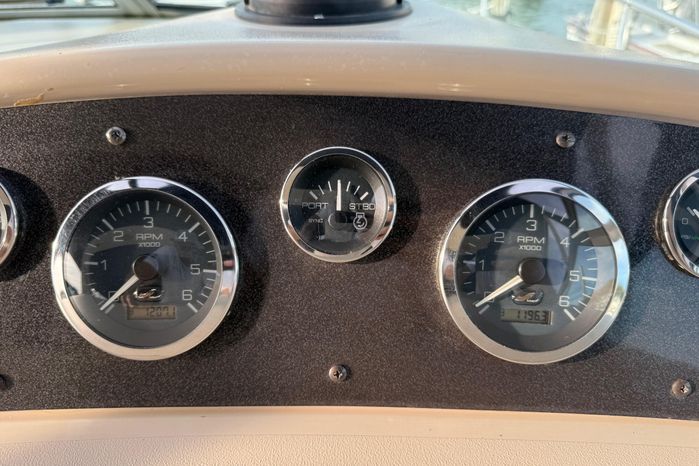 Freshwater / Great Lakes boat since new this vessel features Twin MerCruiser 350-Magnum 300-hp Gas Engine's with MAG MPI 350 V-Drive Engines (Note: Starboard Engine Replaced 2025 with only 35 hours). Notable features include but are not limited to the following: Air-Conditioning & Heat, Head (Vacuflush) w/Vanity/Sink/Shower, Windlass Anchor, Garmin Color Chartplotter, Raytheoon VHF Radio, Premium Stereo system with CD Player, Cockpit Speakers, Cockpit Wet Bar w/Sink, New Aquadek on swim platform, Canvas Package (Camper Top w/Strata-Glass & Screens), Snap-in Snap-out Cockpit Carpeting, and MUCH more!