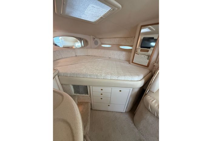 Freshwater / Great Lakes boat since new this vessel features Twin MerCruiser 350-Magnum 300-hp Gas Engine's with MAG MPI 350 V-Drive Engines (Note: Starboard Engine Replaced 2025 with only 35 hours). Notable features include but are not limited to the following: Air-Conditioning & Heat, Head (Vacuflush) w/Vanity/Sink/Shower, Windlass Anchor, Garmin Color Chartplotter, Raytheoon VHF Radio, Premium Stereo system with CD Player, Cockpit Speakers, Cockpit Wet Bar w/Sink, New Aquadek on swim platform, Canvas Package (Camper Top w/Strata-Glass & Screens), Snap-in Snap-out Cockpit Carpeting, and MUCH more!