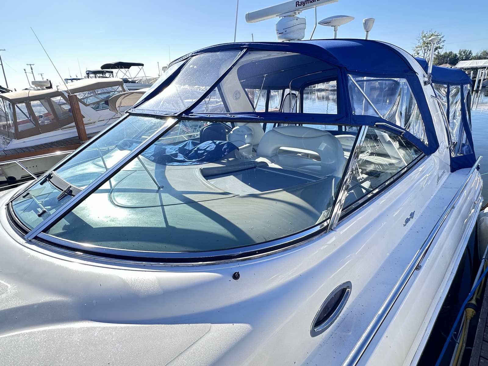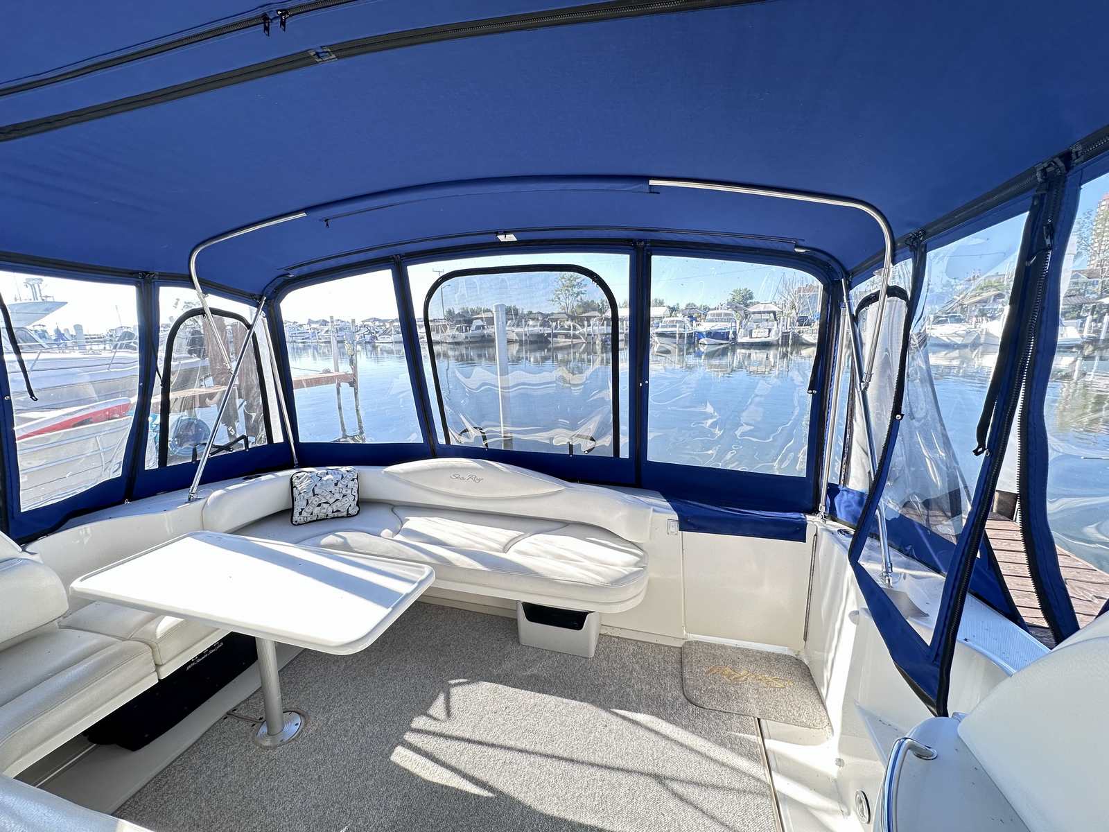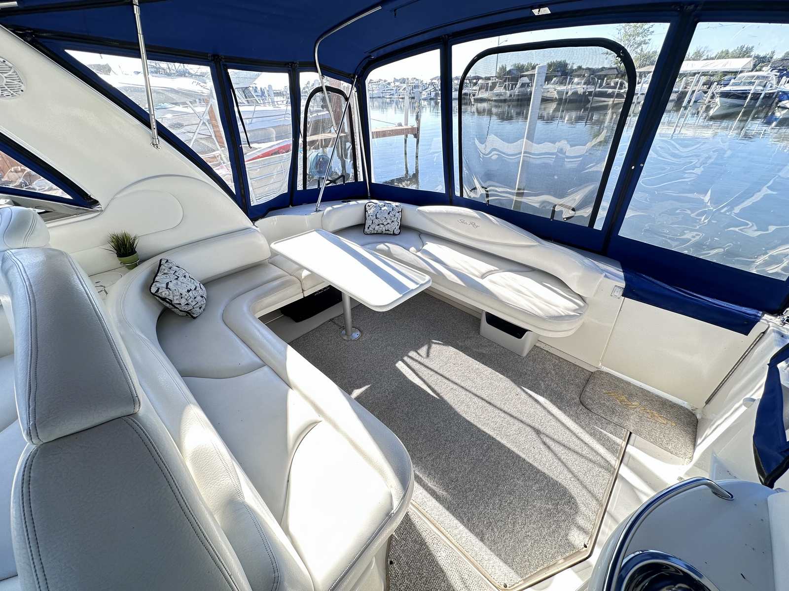 This freshwater only Sea Ray is in excellent condition with new canvas enclosure by Lakeshore Boattop, new cabin flooring, newer GPS, Westerbeke Generator and several other great options on board! She is in the water for a few more days at Emerald City for easy viewing!