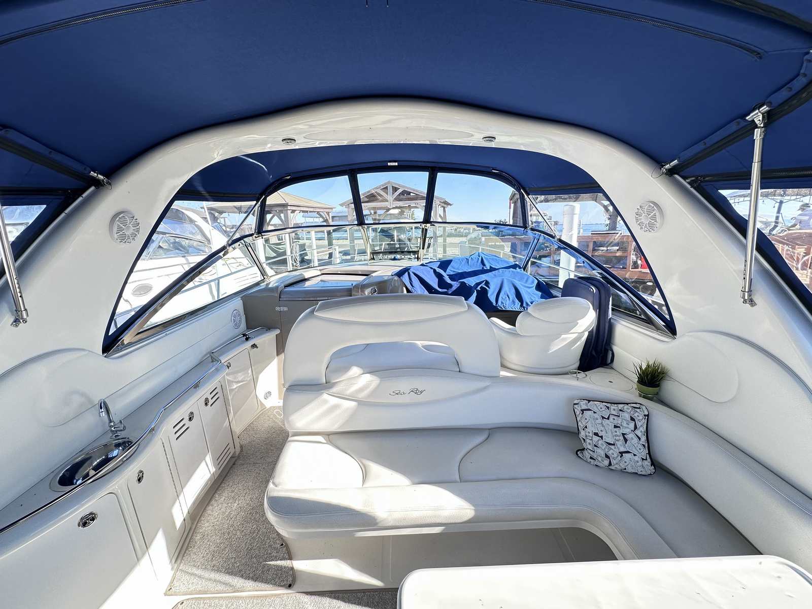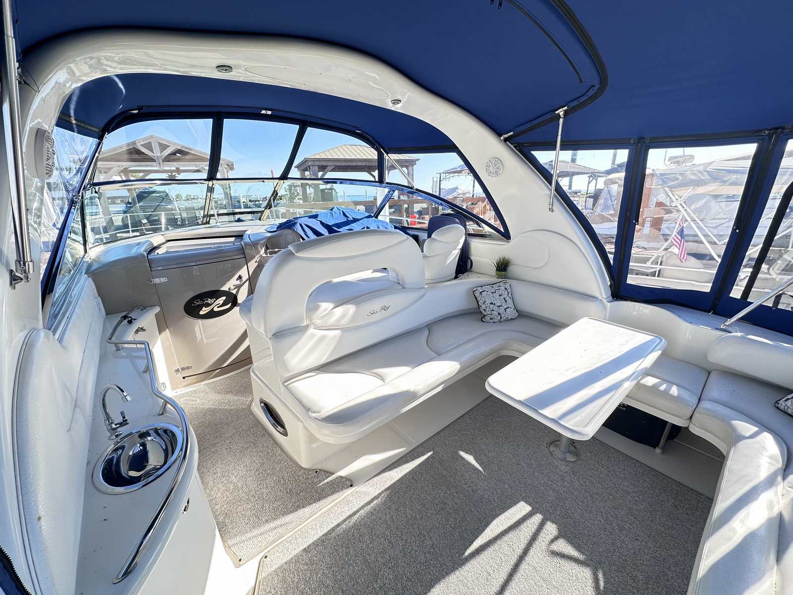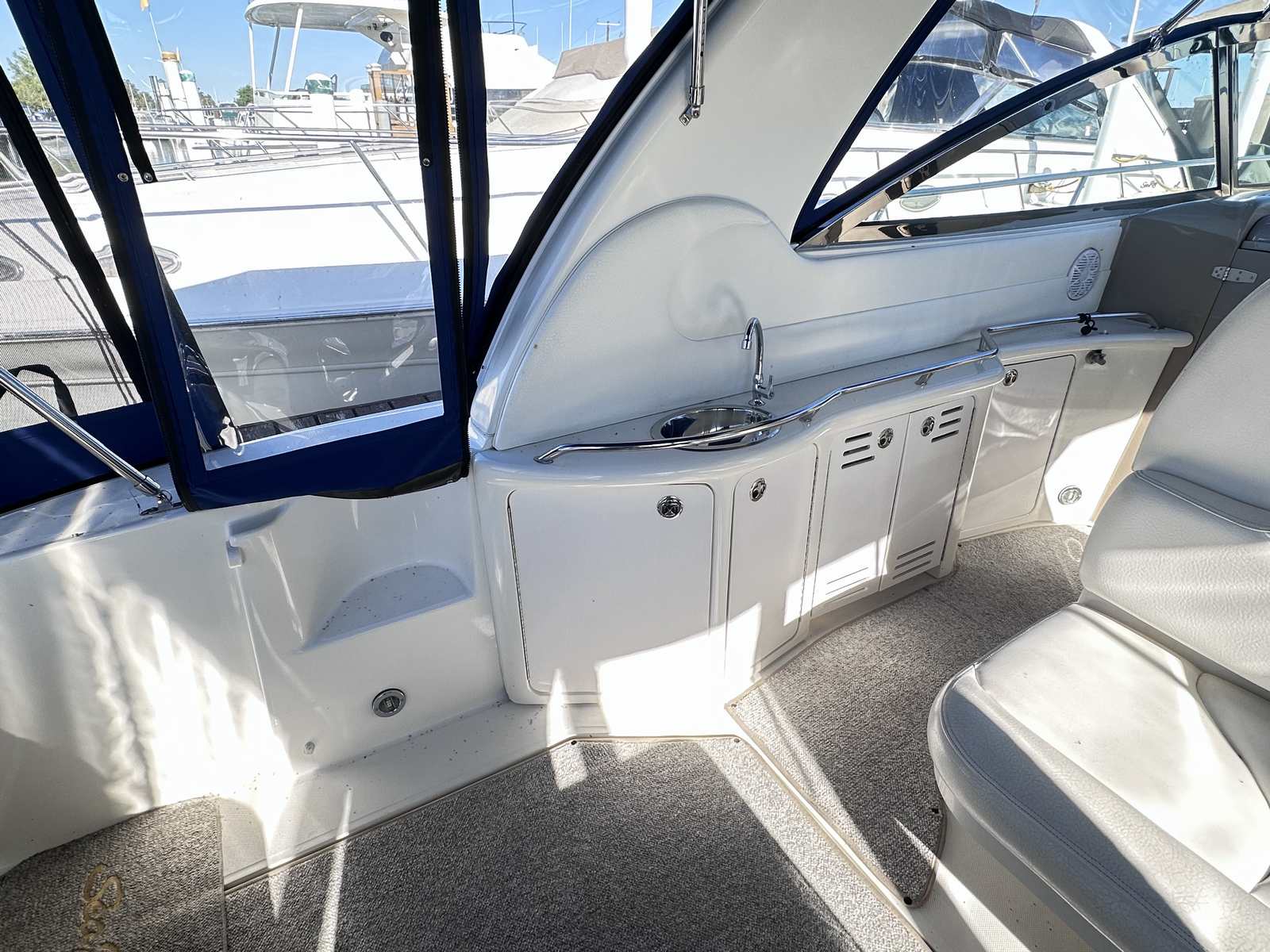 This freshwater only Sea Ray is in excellent condition with new canvas enclosure by Lakeshore Boattop, new cabin flooring, newer GPS, Westerbeke Generator and several other great options on board! She is in the water for a few more days at Emerald City for easy viewing!