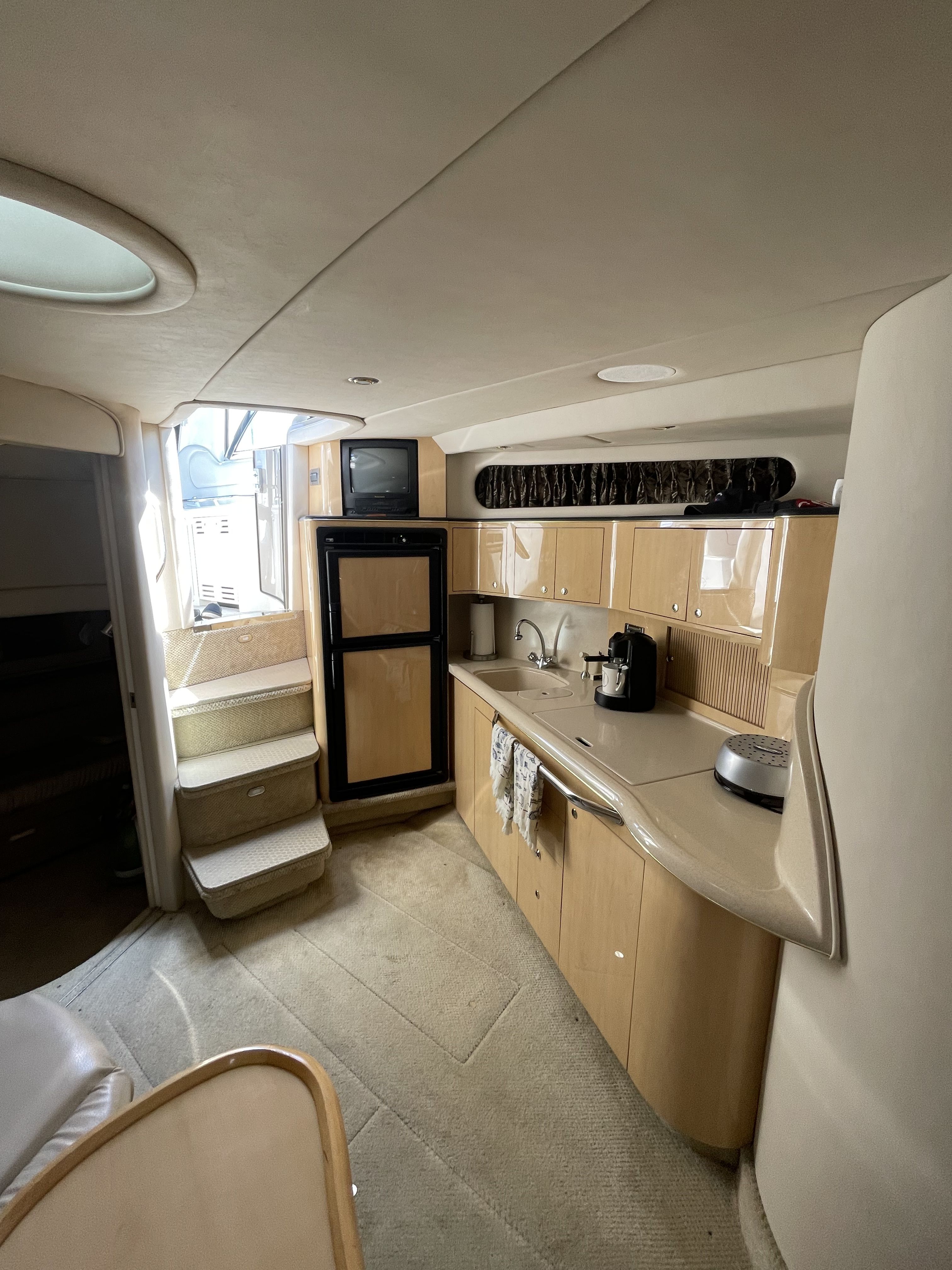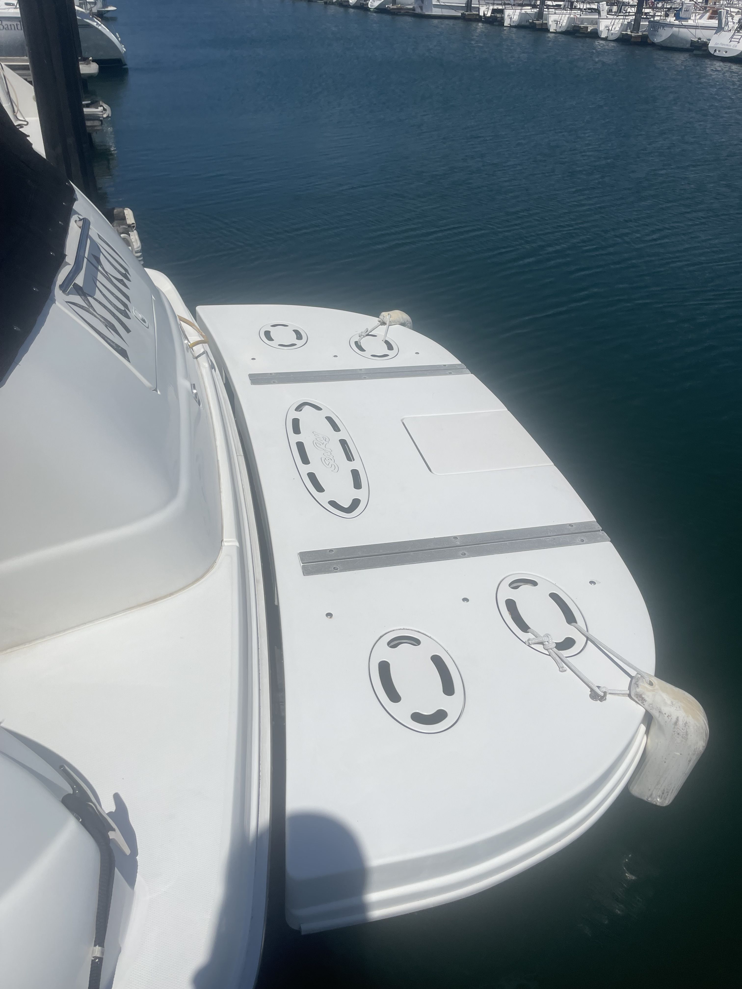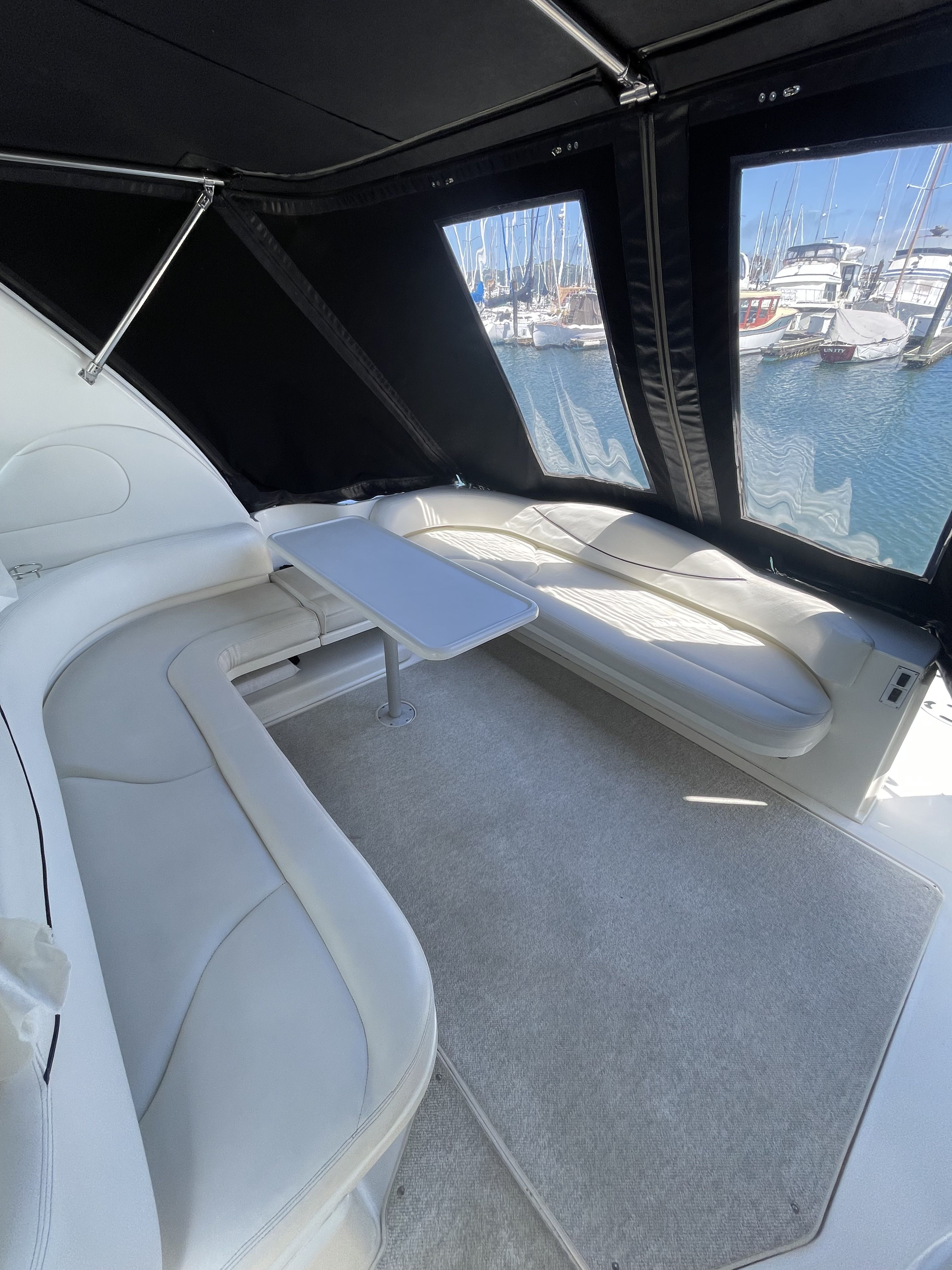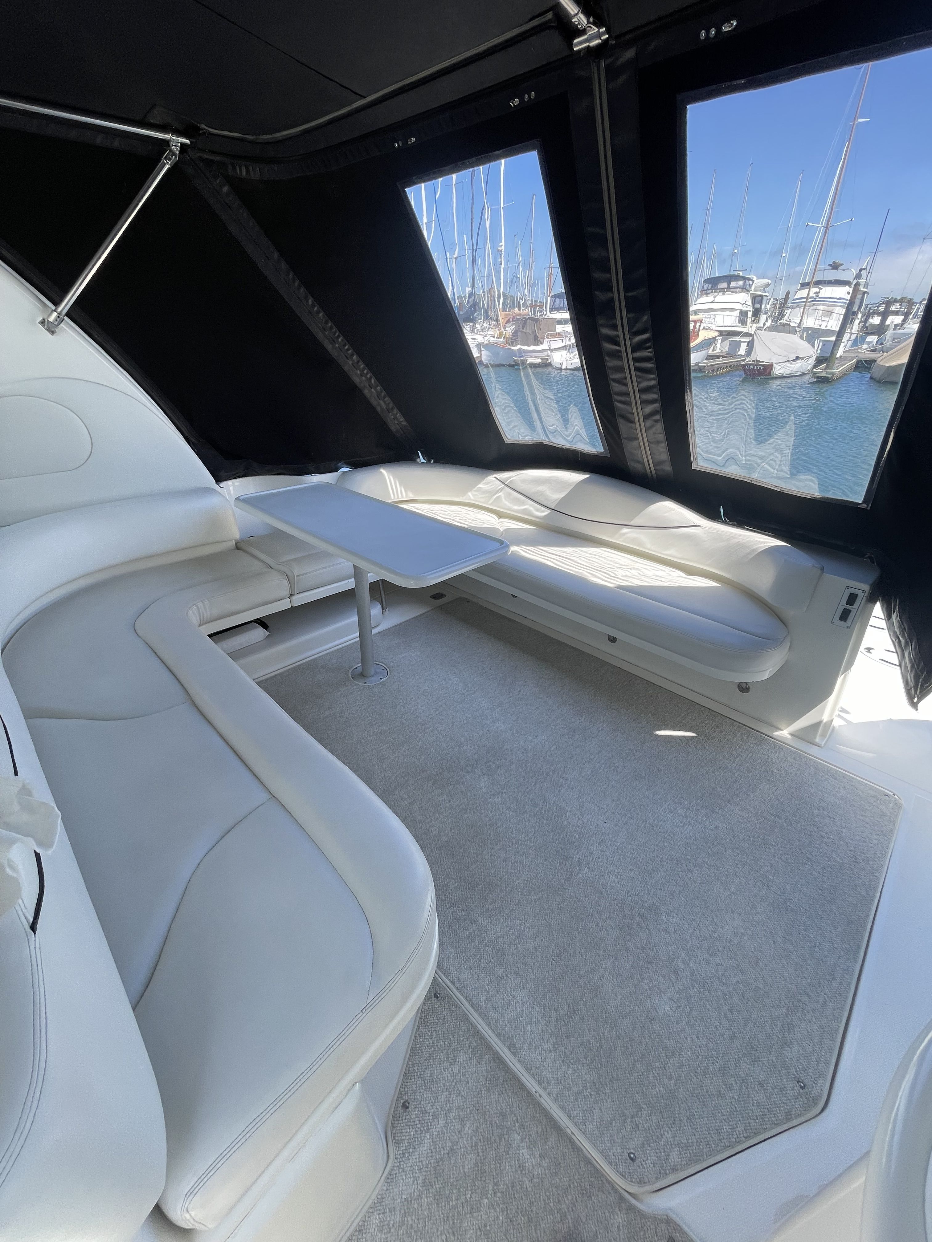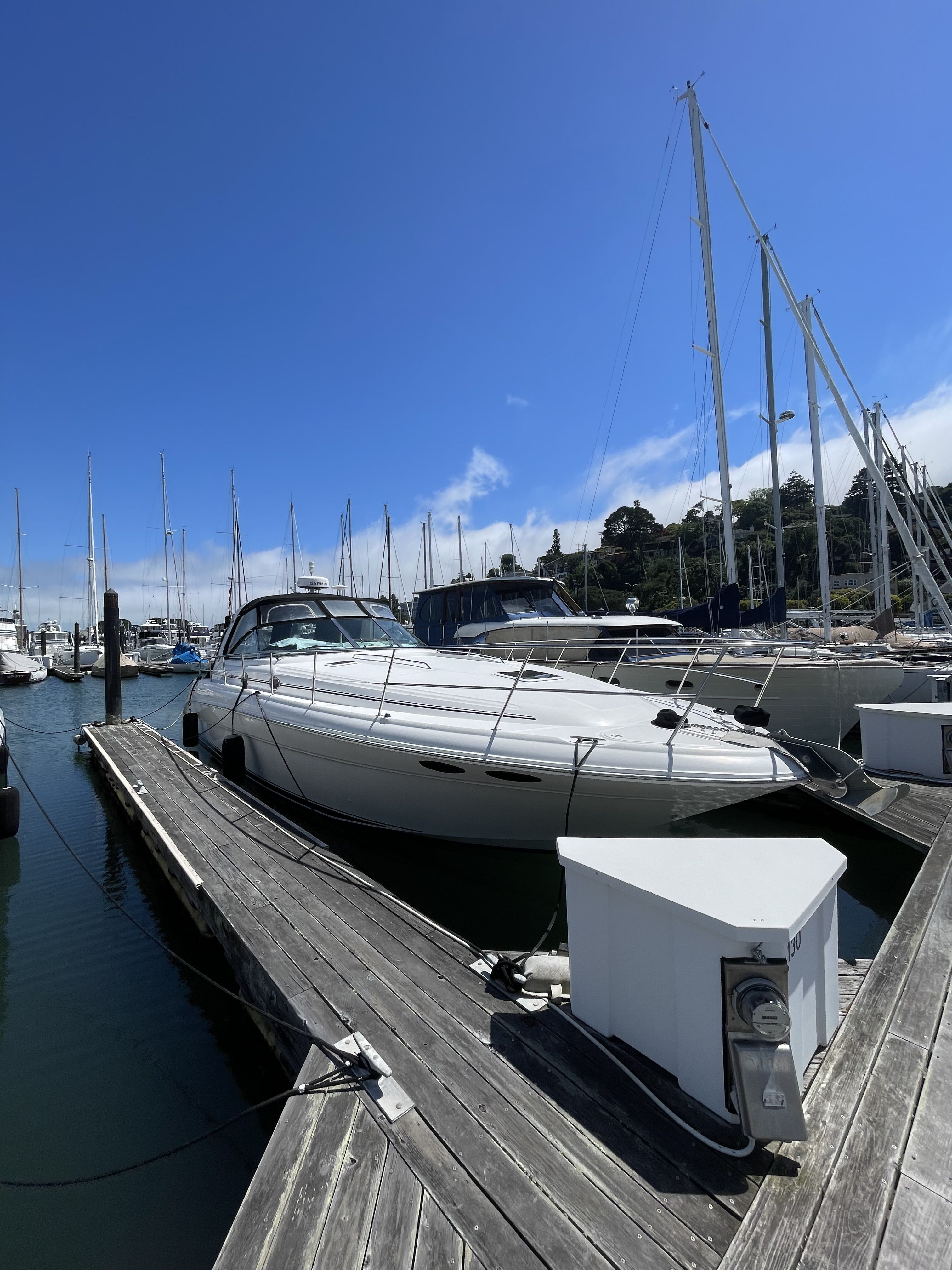 Extremely well optioned 2000 sea ray 41 Sundance sitting in Sausalito CA. This boat has twin Diesel Cat 3116 engines to push her along nicely. She is optioned with a bow thruster for ease around the docks. She has the optional power swim platform. Canvas and isinglass shows very well along with the rest of the boat. Very clean all around and a ton of boat at this price! What a great platform to get the family out on the water on.
