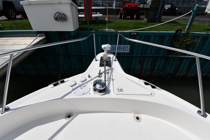 Freshwater / Great Lakes boat since new this vessel features Twin Caterpillar 3208 435-hp Diesel Engine's. Notable features include but are not limited to the following: Air-Conditioning & Heat (2-Units), (2) Heads (Vacuflush) w/Vanity/Sink/Stall-Shower, Cherry Cabinetry, Windlass Anchor w/Forward Pedal-Controls (Note Forward Freshwater Washdown), Hydraulic Swim-Platform, Canvas Package (Forward Convertible-Top w/Forward / Side-Windows / Aft Convertible-Top w/3-Piece Slant-Back Rear), Cockpit Wet Bar w/Sink, Westerbeke 8.0kw Generator, NEW 2025 Electronics Package (Garmin GPSMAP 1643 MFD w/GPS/Chartplotter, Garmin GPSMAP 943 XSV w/Autopilot Interface, Garmin VHF 115 Marine Radio, Starlink w/Seaview-Mount (Professional Install), Premium Fusion Sound System w/(2) Sub-Woofers/AMP/Wired Remote-Control (Note Bluetooth) - Extensive JL-Audio Speakers Throughout Cockpit / Swim-Platform - Note Interface NEMA2000 w/Garmin MFD, and MUCH more!