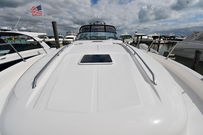 Freshwater / Great Lakes boat since new this vessel features Twin Caterpillar 3208 435-hp Diesel Engine's. Notable features include but are not limited to the following: Air-Conditioning & Heat (2-Units), (2) Heads (Vacuflush) w/Vanity/Sink/Stall-Shower, Cherry Cabinetry, Windlass Anchor w/Forward Pedal-Controls (Note Forward Freshwater Washdown), Hydraulic Swim-Platform, Canvas Package (Forward Convertible-Top w/Forward / Side-Windows / Aft Convertible-Top w/3-Piece Slant-Back Rear), Cockpit Wet Bar w/Sink, Westerbeke 8.0kw Generator, NEW 2025 Electronics Package (Garmin GPSMAP 1643 MFD w/GPS/Chartplotter, Garmin GPSMAP 943 XSV w/Autopilot Interface, Garmin VHF 115 Marine Radio, Starlink w/Seaview-Mount (Professional Install), Premium Fusion Sound System w/(2) Sub-Woofers/AMP/Wired Remote-Control (Note Bluetooth) - Extensive JL-Audio Speakers Throughout Cockpit / Swim-Platform - Note Interface NEMA2000 w/Garmin MFD, and MUCH more!