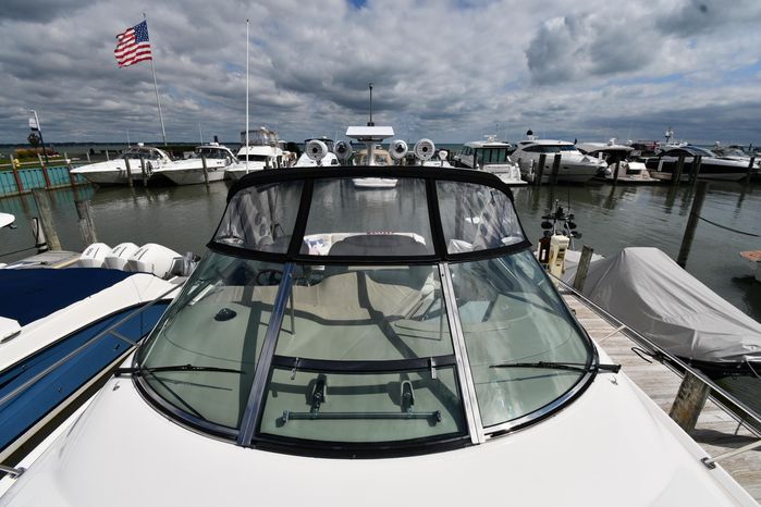 Freshwater / Great Lakes boat since new this vessel features Twin Caterpillar 3208 435-hp Diesel Engine's. Notable features include but are not limited to the following: Air-Conditioning & Heat (2-Units), (2) Heads (Vacuflush) w/Vanity/Sink/Stall-Shower, Cherry Cabinetry, Windlass Anchor w/Forward Pedal-Controls (Note Forward Freshwater Washdown), Hydraulic Swim-Platform, Canvas Package (Forward Convertible-Top w/Forward / Side-Windows / Aft Convertible-Top w/3-Piece Slant-Back Rear), Cockpit Wet Bar w/Sink, Westerbeke 8.0kw Generator, NEW 2025 Electronics Package (Garmin GPSMAP 1643 MFD w/GPS/Chartplotter, Garmin GPSMAP 943 XSV w/Autopilot Interface, Garmin VHF 115 Marine Radio, Starlink w/Seaview-Mount (Professional Install), Premium Fusion Sound System w/(2) Sub-Woofers/AMP/Wired Remote-Control (Note Bluetooth) - Extensive JL-Audio Speakers Throughout Cockpit / Swim-Platform - Note Interface NEMA2000 w/Garmin MFD, and MUCH more!
