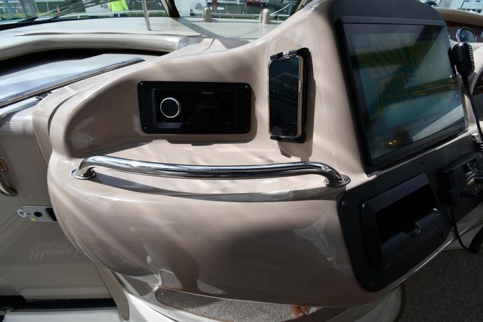 Broker Notes: Exterior finish is in far above average condition .. shine quality is incredible. Inside heated winter stored. $20k spent in 2025 weeks/Garmin NAV Upgrade (invoice on file), $30k in Fusion / JL-Audio Audio Equipment .. She's ready to entertain! Note LED Smart TV's in Forward Stateroom / Salon / Aft Mid-Cabin. VERY nice CAT Diesel vessel w/desirable cherry (Vitracore) optioned cabin interior, tan dashboard, hydraulic swim-platform. Please contact listing agent for further details.