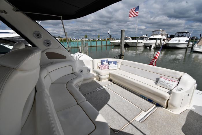 Freshwater / Great Lakes boat since new this vessel features Twin Caterpillar 3208 435-hp Diesel Engine's. Notable features include but are not limited to the following: Air-Conditioning & Heat (2-Units), (2) Heads (Vacuflush) w/Vanity/Sink/Stall-Shower, Cherry Cabinetry, Windlass Anchor w/Forward Pedal-Controls (Note Forward Freshwater Washdown), Hydraulic Swim-Platform, Canvas Package (Forward Convertible-Top w/Forward / Side-Windows / Aft Convertible-Top w/3-Piece Slant-Back Rear), Cockpit Wet Bar w/Sink, Westerbeke 8.0kw Generator, NEW 2025 Electronics Package (Garmin GPSMAP 1643 MFD w/GPS/Chartplotter, Garmin GPSMAP 943 XSV w/Autopilot Interface, Garmin VHF 115 Marine Radio, Starlink w/Seaview-Mount (Professional Install), Premium Fusion Sound System w/(2) Sub-Woofers/AMP/Wired Remote-Control (Note Bluetooth) - Extensive JL-Audio Speakers Throughout Cockpit / Swim-Platform - Note Interface NEMA2000 w/Garmin MFD, and MUCH more!