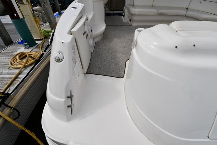 Freshwater / Great Lakes boat since new this vessel features Twin Caterpillar 3208 435-hp Diesel Engine's. Notable features include but are not limited to the following: Air-Conditioning & Heat (2-Units), (2) Heads (Vacuflush) w/Vanity/Sink/Stall-Shower, Cherry Cabinetry, Windlass Anchor w/Forward Pedal-Controls (Note Forward Freshwater Washdown), Hydraulic Swim-Platform, Canvas Package (Forward Convertible-Top w/Forward / Side-Windows / Aft Convertible-Top w/3-Piece Slant-Back Rear), Cockpit Wet Bar w/Sink, Westerbeke 8.0kw Generator, NEW 2025 Electronics Package (Garmin GPSMAP 1643 MFD w/GPS/Chartplotter, Garmin GPSMAP 943 XSV w/Autopilot Interface, Garmin VHF 115 Marine Radio, Starlink w/Seaview-Mount (Professional Install), Premium Fusion Sound System w/(2) Sub-Woofers/AMP/Wired Remote-Control (Note Bluetooth) - Extensive JL-Audio Speakers Throughout Cockpit / Swim-Platform - Note Interface NEMA2000 w/Garmin MFD, and MUCH more!