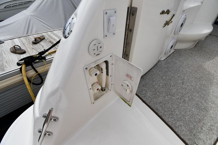 Freshwater / Great Lakes boat since new this vessel features Twin Caterpillar 3208 435-hp Diesel Engine's. Notable features include but are not limited to the following: Air-Conditioning & Heat (2-Units), (2) Heads (Vacuflush) w/Vanity/Sink/Stall-Shower, Cherry Cabinetry, Windlass Anchor w/Forward Pedal-Controls (Note Forward Freshwater Washdown), Hydraulic Swim-Platform, Canvas Package (Forward Convertible-Top w/Forward / Side-Windows / Aft Convertible-Top w/3-Piece Slant-Back Rear), Cockpit Wet Bar w/Sink, Westerbeke 8.0kw Generator, NEW 2025 Electronics Package (Garmin GPSMAP 1643 MFD w/GPS/Chartplotter, Garmin GPSMAP 943 XSV w/Autopilot Interface, Garmin VHF 115 Marine Radio, Starlink w/Seaview-Mount (Professional Install), Premium Fusion Sound System w/(2) Sub-Woofers/AMP/Wired Remote-Control (Note Bluetooth) - Extensive JL-Audio Speakers Throughout Cockpit / Swim-Platform - Note Interface NEMA2000 w/Garmin MFD, and MUCH more!