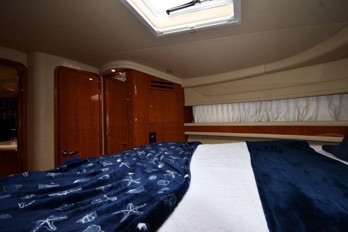 Freshwater / Great Lakes boat since new this vessel features Twin Caterpillar 3208 435-hp Diesel Engine's. Notable features include but are not limited to the following: Air-Conditioning & Heat (2-Units), (2) Heads (Vacuflush) w/Vanity/Sink/Stall-Shower, Cherry Cabinetry, Windlass Anchor w/Forward Pedal-Controls (Note Forward Freshwater Washdown), Hydraulic Swim-Platform, Canvas Package (Forward Convertible-Top w/Forward / Side-Windows / Aft Convertible-Top w/3-Piece Slant-Back Rear), Cockpit Wet Bar w/Sink, Westerbeke 8.0kw Generator, NEW 2025 Electronics Package (Garmin GPSMAP 1643 MFD w/GPS/Chartplotter, Garmin GPSMAP 943 XSV w/Autopilot Interface, Garmin VHF 115 Marine Radio, Starlink w/Seaview-Mount (Professional Install), Premium Fusion Sound System w/(2) Sub-Woofers/AMP/Wired Remote-Control (Note Bluetooth) - Extensive JL-Audio Speakers Throughout Cockpit / Swim-Platform - Note Interface NEMA2000 w/Garmin MFD, and MUCH more!
