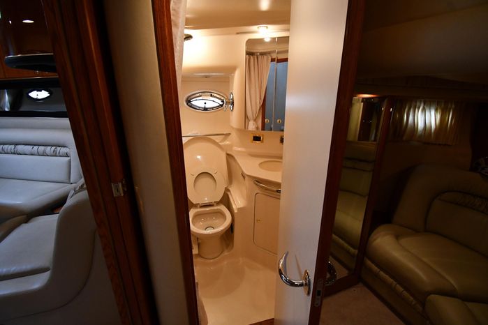 Freshwater / Great Lakes boat since new this vessel features Twin Caterpillar 3208 435-hp Diesel Engine's. Notable features include but are not limited to the following: Air-Conditioning & Heat (2-Units), (2) Heads (Vacuflush) w/Vanity/Sink/Stall-Shower, Cherry Cabinetry, Windlass Anchor w/Forward Pedal-Controls (Note Forward Freshwater Washdown), Hydraulic Swim-Platform, Canvas Package (Forward Convertible-Top w/Forward / Side-Windows / Aft Convertible-Top w/3-Piece Slant-Back Rear), Cockpit Wet Bar w/Sink, Westerbeke 8.0kw Generator, NEW 2025 Electronics Package (Garmin GPSMAP 1643 MFD w/GPS/Chartplotter, Garmin GPSMAP 943 XSV w/Autopilot Interface, Garmin VHF 115 Marine Radio, Starlink w/Seaview-Mount (Professional Install), Premium Fusion Sound System w/(2) Sub-Woofers/AMP/Wired Remote-Control (Note Bluetooth) - Extensive JL-Audio Speakers Throughout Cockpit / Swim-Platform - Note Interface NEMA2000 w/Garmin MFD, and MUCH more!