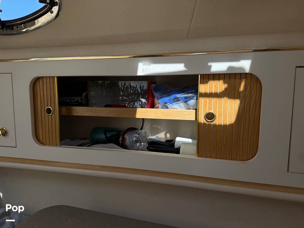 Powered by twin I/O Mercruisers, this Express Cruiser delivers smooth and reliable performance while still providing a comfortable and spacious ride. The cockpit offers plenty of seating for guests and a great layout for relaxing or socializing while underway or at the dock. A large swim platform with ladder makes getting in and out of the water easy for swimming, tubing, or just cooling off on warm days.