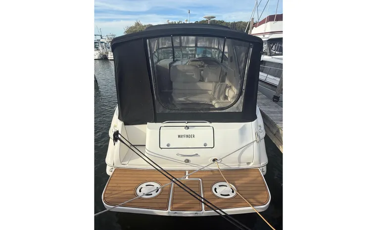 Freshwater / Great Lakes boat since new this vessel features Twin MerCruiser 350-Magnum 300-hp Gas Engine's with MAG MPI 350 V-Drive Engines (Note: Starboard Engine Replaced 2025 with only 35 hours). Notable features include but are not limited to the following: Air-Conditioning & Heat, Head (Vacuflush) w/Vanity/Sink/Shower, Windlass Anchor, Garmin Color Chartplotter, Raytheoon VHF Radio, Premium Stereo system with CD Player, Cockpit Speakers, Cockpit Wet Bar w/Sink, New Aquadek on swim platform, Canvas Package (Camper Top w/Strata-Glass & Screens), Snap-in Snap-out Cockpit Carpeting, and MUCH more!