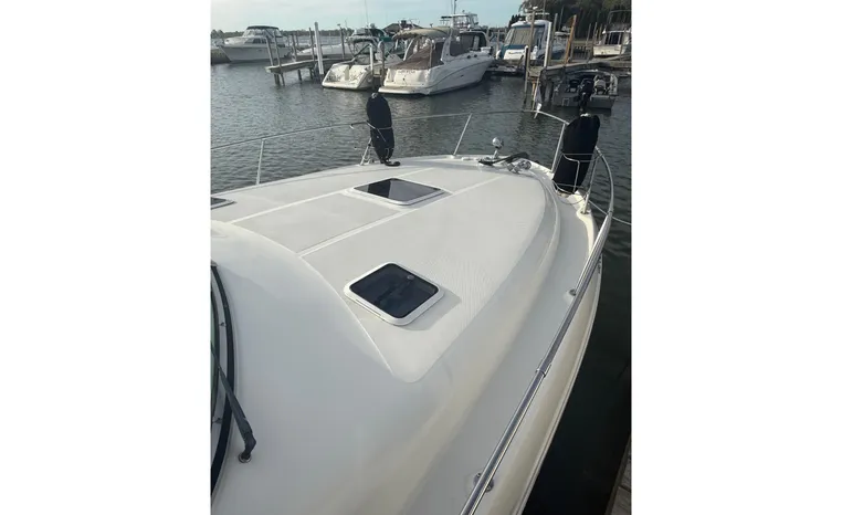 Freshwater / Great Lakes boat since new this vessel features Twin MerCruiser 350-Magnum 300-hp Gas Engine's with MAG MPI 350 V-Drive Engines (Note: Starboard Engine Replaced 2025 with only 35 hours). Notable features include but are not limited to the following: Air-Conditioning & Heat, Head (Vacuflush) w/Vanity/Sink/Shower, Windlass Anchor, Garmin Color Chartplotter, Raytheoon VHF Radio, Premium Stereo system with CD Player, Cockpit Speakers, Cockpit Wet Bar w/Sink, New Aquadek on swim platform, Canvas Package (Camper Top w/Strata-Glass & Screens), Snap-in Snap-out Cockpit Carpeting, and MUCH more!