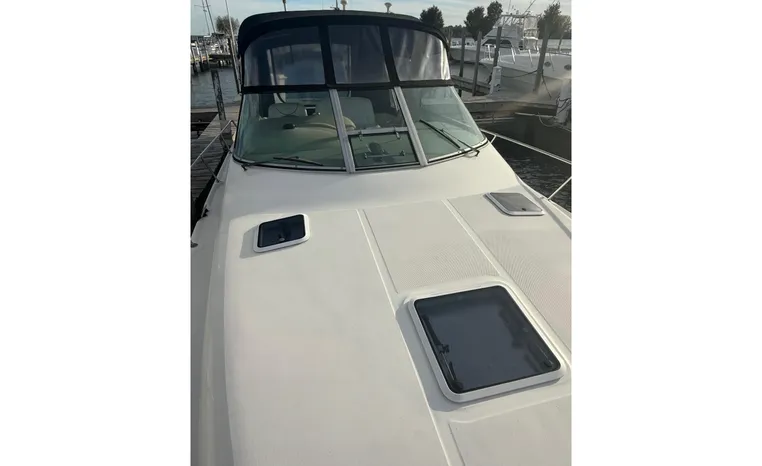 Freshwater / Great Lakes boat since new this vessel features Twin MerCruiser 350-Magnum 300-hp Gas Engine's with MAG MPI 350 V-Drive Engines (Note: Starboard Engine Replaced 2025 with only 35 hours). Notable features include but are not limited to the following: Air-Conditioning & Heat, Head (Vacuflush) w/Vanity/Sink/Shower, Windlass Anchor, Garmin Color Chartplotter, Raytheoon VHF Radio, Premium Stereo system with CD Player, Cockpit Speakers, Cockpit Wet Bar w/Sink, New Aquadek on swim platform, Canvas Package (Camper Top w/Strata-Glass & Screens), Snap-in Snap-out Cockpit Carpeting, and MUCH more!